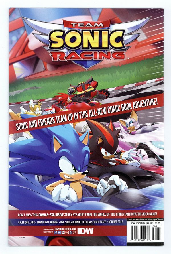 Published Sep 2018 by IDW Publishing.$36.00Written by Ian Flynn. Art by Tracy Yardley. Cover by Lamar Wells. 'The Battle for Angel Island,' Part 1. One of the greatest threats Sonic has ever faced descends upon Angel Island, home of the mystical Master Emerald, seeking to take the Emerald's power and control the world. Can Sonic and his friends stop the attack on the island-or is it already too late? 28 paghes, full color. Cover price $3.99.