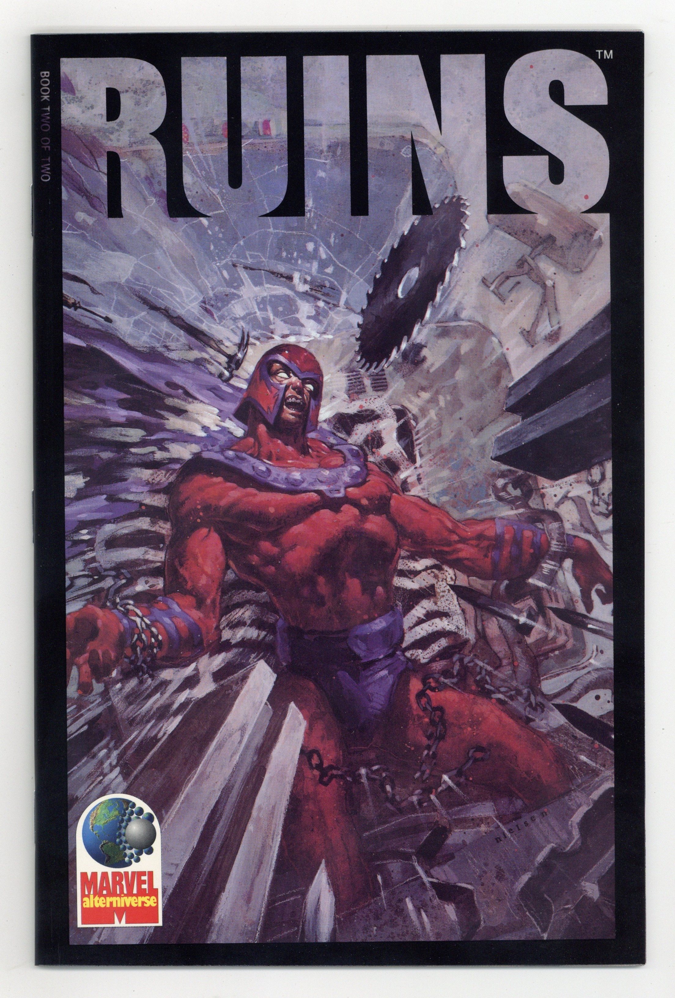 Tags: Hero/Villain Teams$45.00Direct Edition. Fully-painted, 32-page Marvel Alterniverse title! Marvels photojournalist Phil Sheldon is dying--dying to prove the Age of Heroes went wrong! Writer Warren Ellis and artists Cliff and Terese Nielsen focus on the modern Marvel characters, like Mystique and Magneto! Based on Marvels. Acetate outer cover. Cover price $4.95.