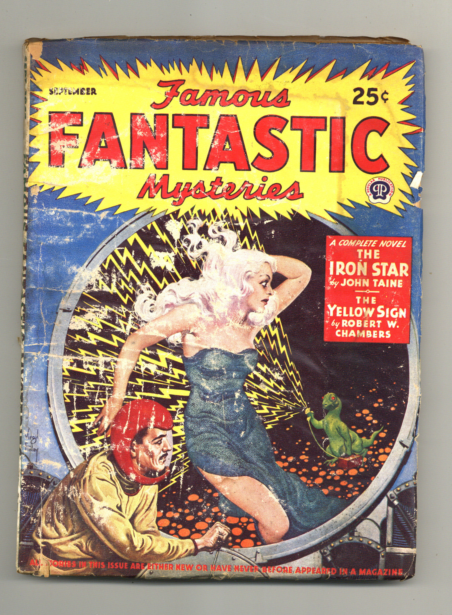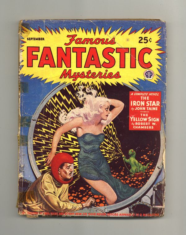 "The Iron Star" a book-length novel by John Taine, plus "Doorway into Time" a novelette by C.L. Moore, and "The Yellow Sign" a novelette Robert W. Chambers.