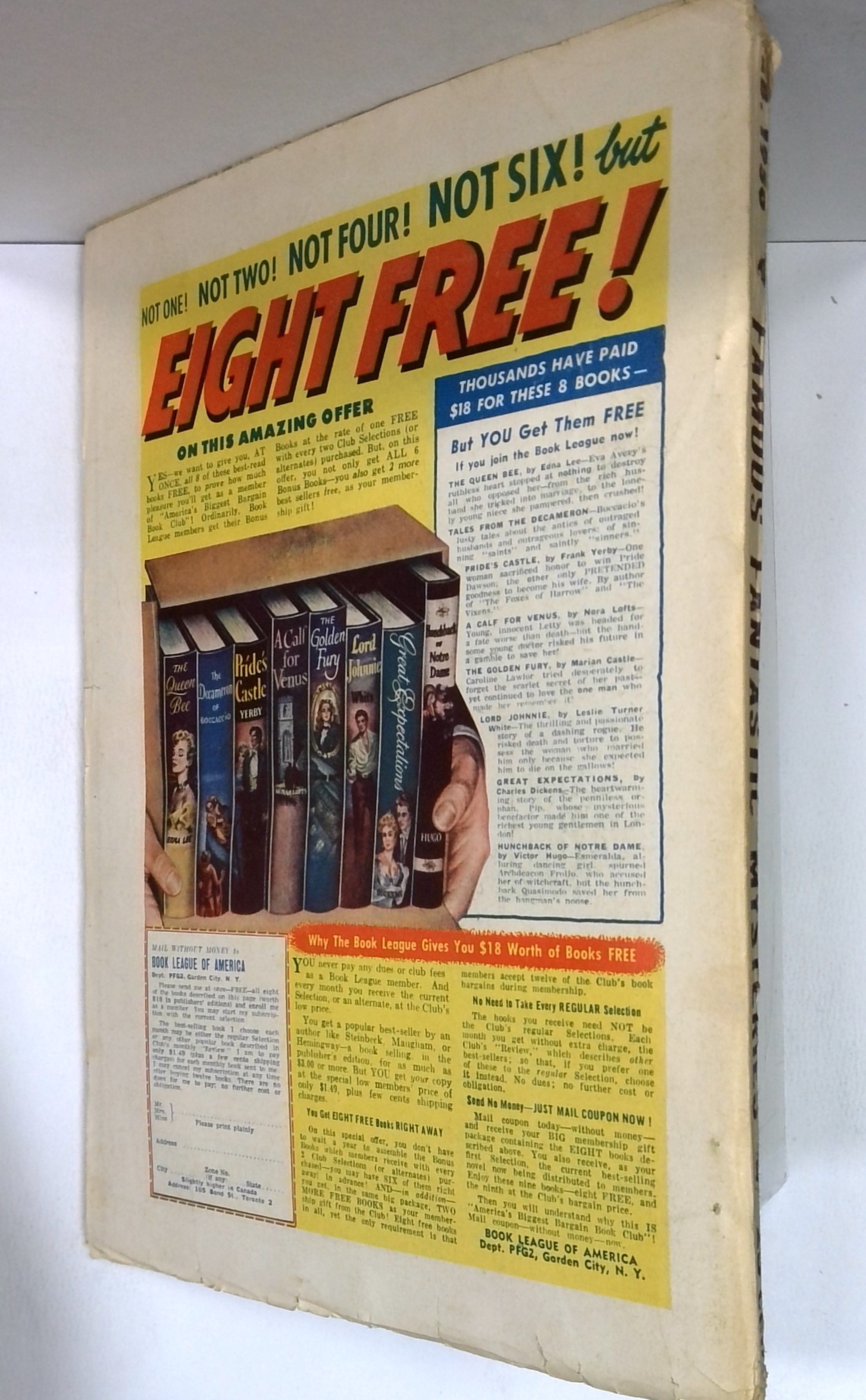 - Front cover detached 50%. Staple rust: Slight.