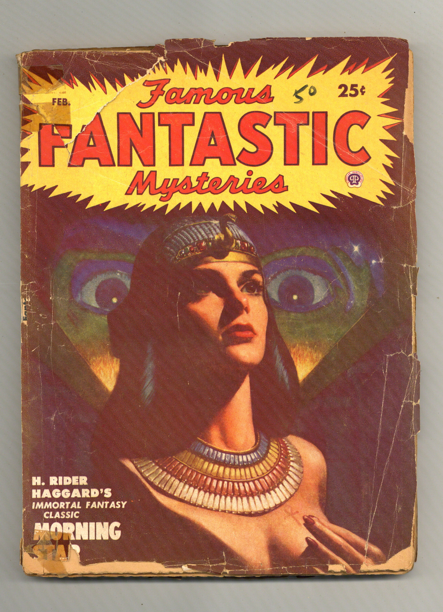 "Morning Star" a book-length novel by H. Rider Haggard,plus "Strange Occurrence in Clerkenwell" a short story by Arthur Machen. Olaf Stapledon is profiled in the "Masters of Fantasy" column.
