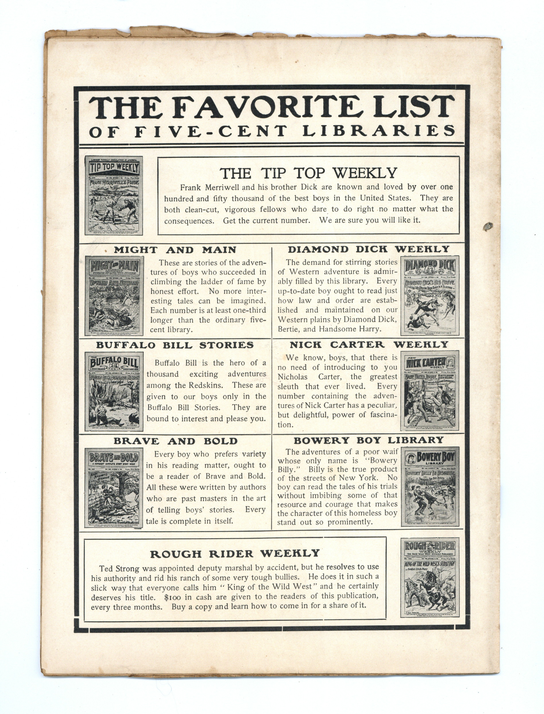 Tags: Pulp AdventurePublished Nov 1906 by Street & Smith.$18.00- Staple rust: Moderate.