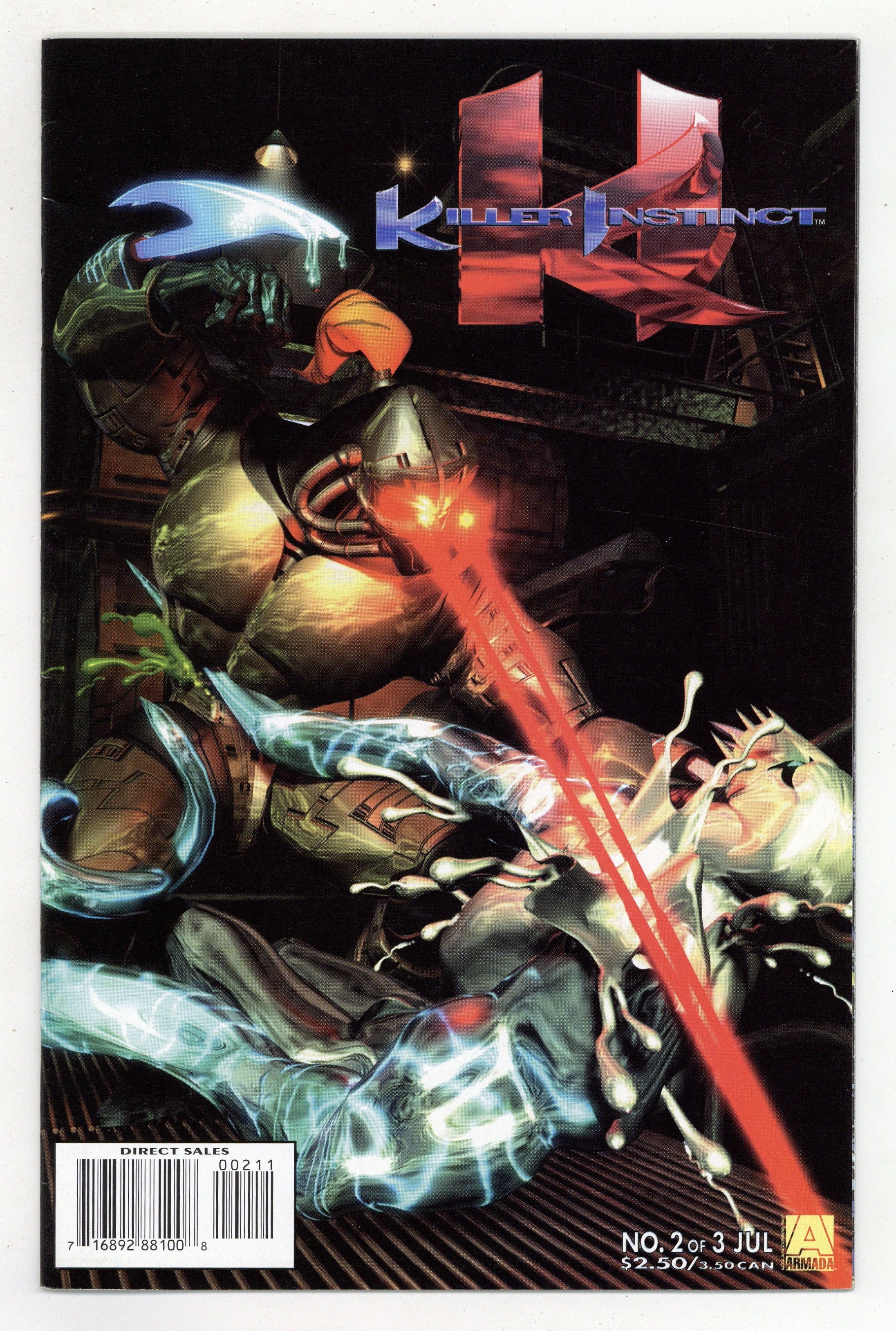 $15.00Number 2 of 3 on cover. "Tiger Bomb" - This issue delves deeper into the dark, dirty secrets of Ultratech, and their reasons behind the Killer Instinct Tournament. Eyedol, one of the most popular fighters in the game, is also introduced. Written by Art Holcomb, with art by Sean Chen, Tom Ryder and Ray Kryssing. Cover by Rareware. FC, 32 pgs. Cover price $2.50.
