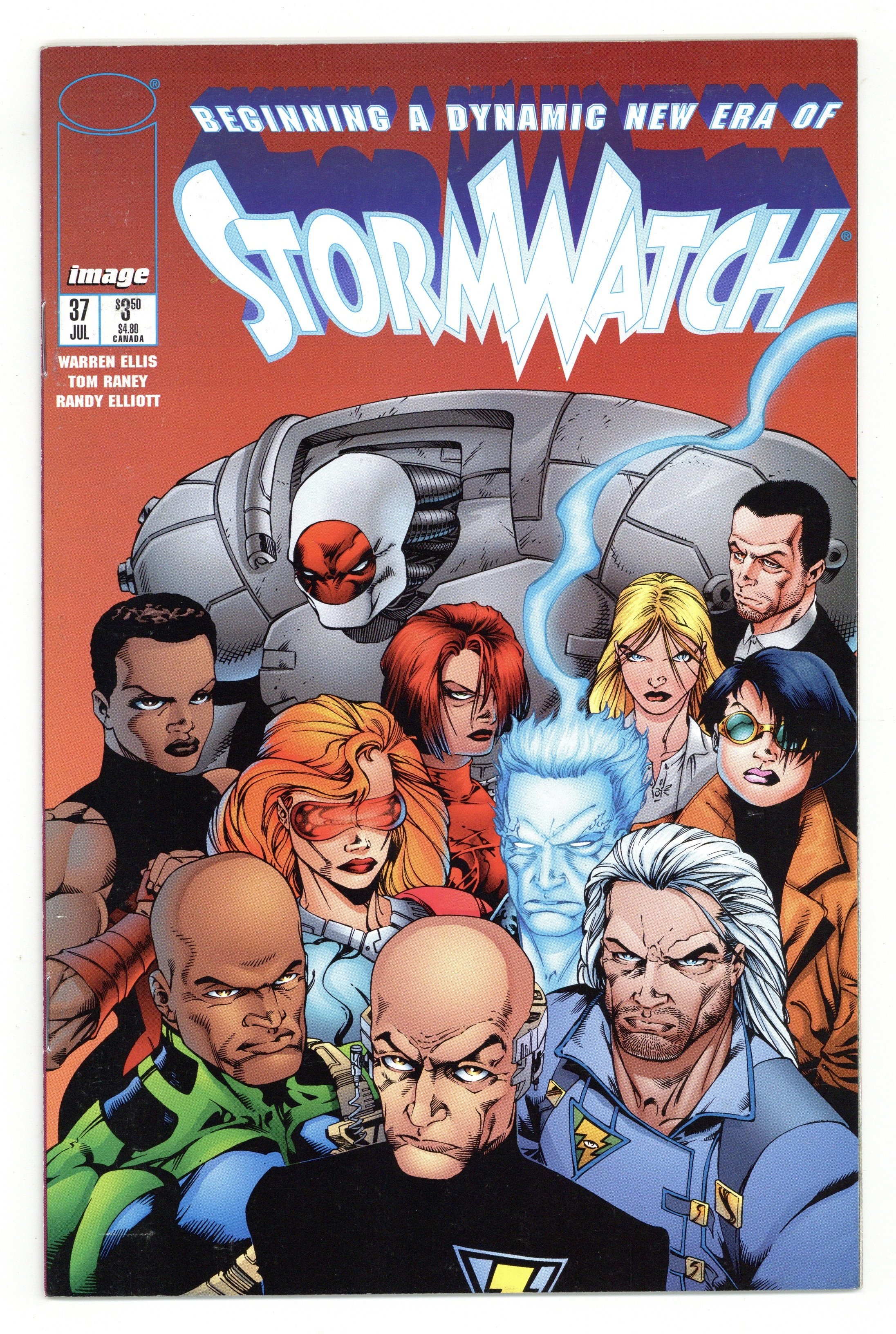 Giant-Sized Issue – Fire from Heaven: Epilogue - Story by Warren Ellis. Art by Tom Raney and Randy Elliot. An amazing new era of StormWatch excitement begins as the much talked-about creative team of Warren Ellis, Tom Raney and Randy Elliot debuts! The team gets a new field leader. New members join. Some old members leave. One member dies! (And Diva is still NOT coming back!) 48 pages, FC. NOTE: 1st appearance of Jenny Sparks, Jack Hawksmoor, and Rose Tattoo. Cover price $3.50.