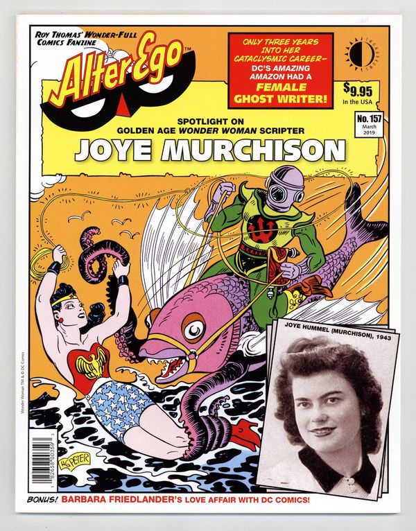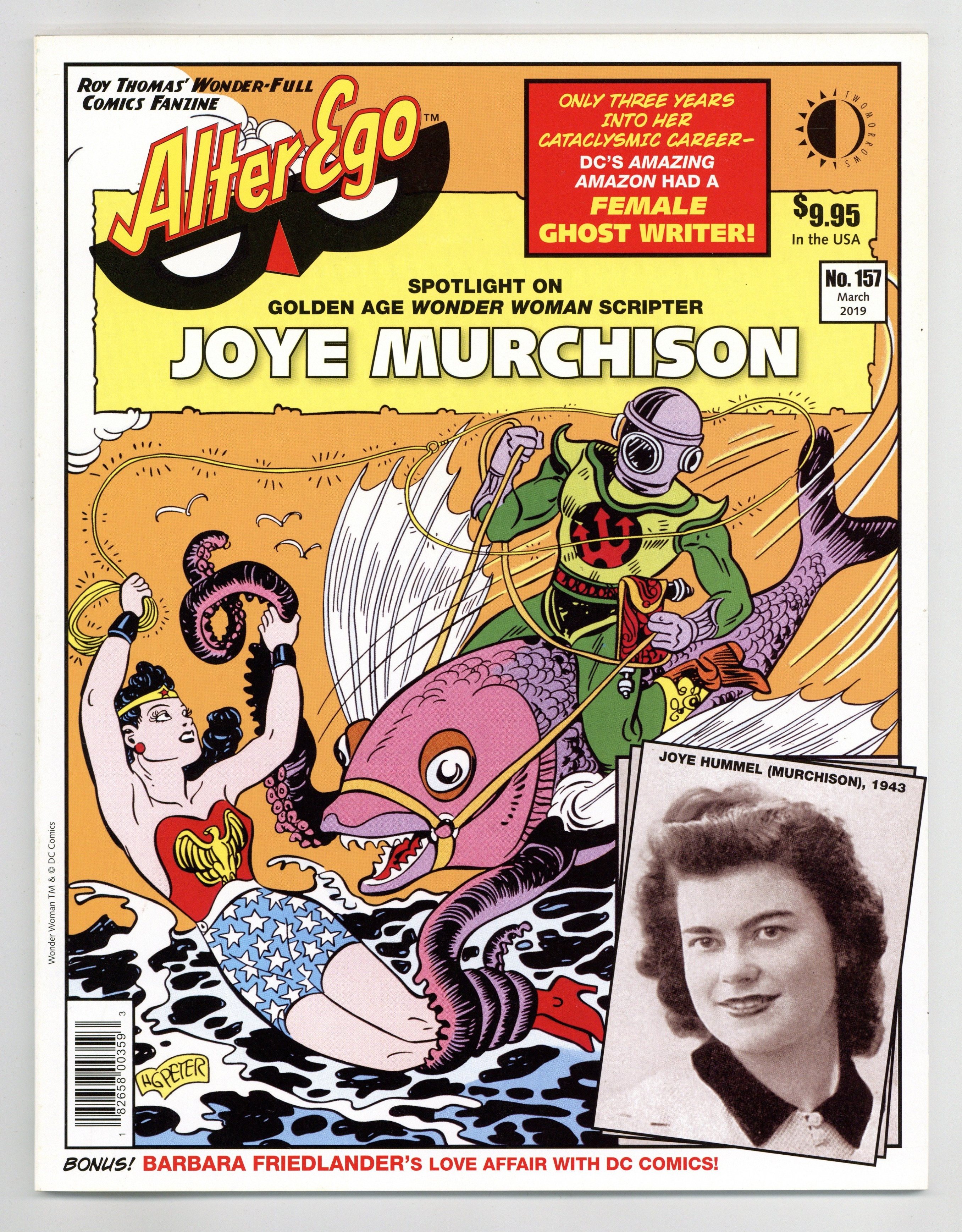 Published Mar 2019 by TwoMorrows.$12.00Cover by H.G. Peter. From 1945 to 1948, just a few years into her 75-year career, the phenomenally popular Wonder Woman had a female scriptwriter: Joye Murchison, assistant to WW co-creator Dr. William Marston! In Alter Ego, you'll revel in her interview conducted by Richard Arndt, featuring rare artwork by H.G. Peter and several previously-unknown art assistants! Plus: Barbara Friedlander, 1960s writer and editor, spills the secrets of DC's love comics-with art and/or anecdotes of Jack Miller, John Romita, Gene Colan, Jay Scott Pike, Tony Abruzzo, Robert Kanigher, Ross Andru, Mike Esposito, Joe Orlando, Carmine Infantino, Mort Weisinger, Julius Schwartz, and many more! And: Of Crows and the Cosmos - Part 8 of Golden/Silver Age star scripter John Broome's 1998 memoir; Mr. Monster's Comic Crypt: Bruce McCorkindale's Mighty Marvel Mashup - Michael T. Gilbert shows how Marvel splash pages might've become Marvel covers; Comic Fandom Archive: The Fan P.O.V. of the Marvel Super-Heroes in 1963 - Bill Schelly and Nick Caputo with some surprising vintage fan-opinions of early Marvel; Fawcett Collectors of America #216 - P.C. Hamerlinck hosts Will Murray on Henry "Lynn" Perkins..."The Stan Lee of '43!" Edited by Roy Thomas. 96 pages, full color. Cover price $9.95.