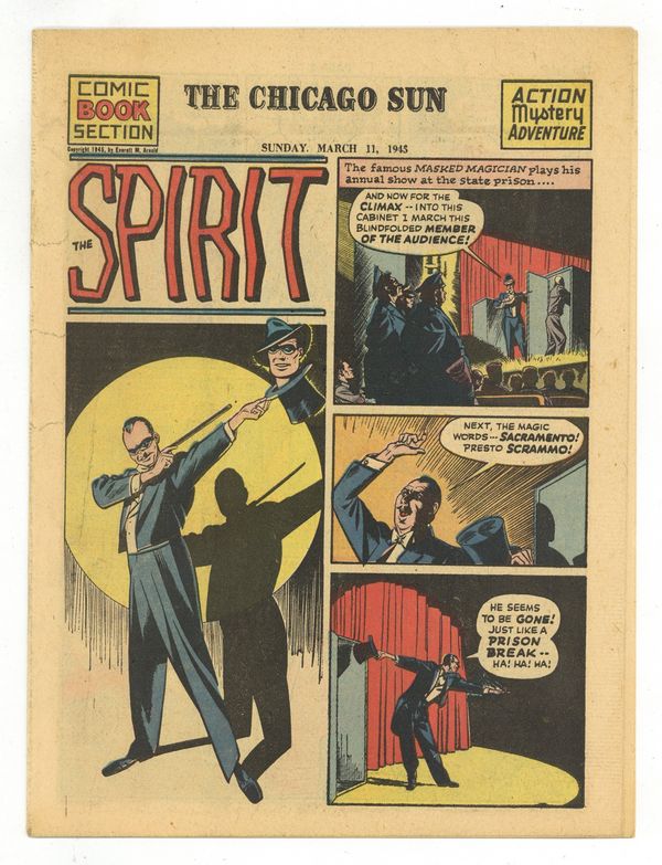 Spirit Weekly Newspaper Comic Insert. 7-1/2 x 10 inches, 16 pages, full color, all newsprint with no slick cover. Wellman/Woolfolk scripts, Fine art with unknown staff assists.