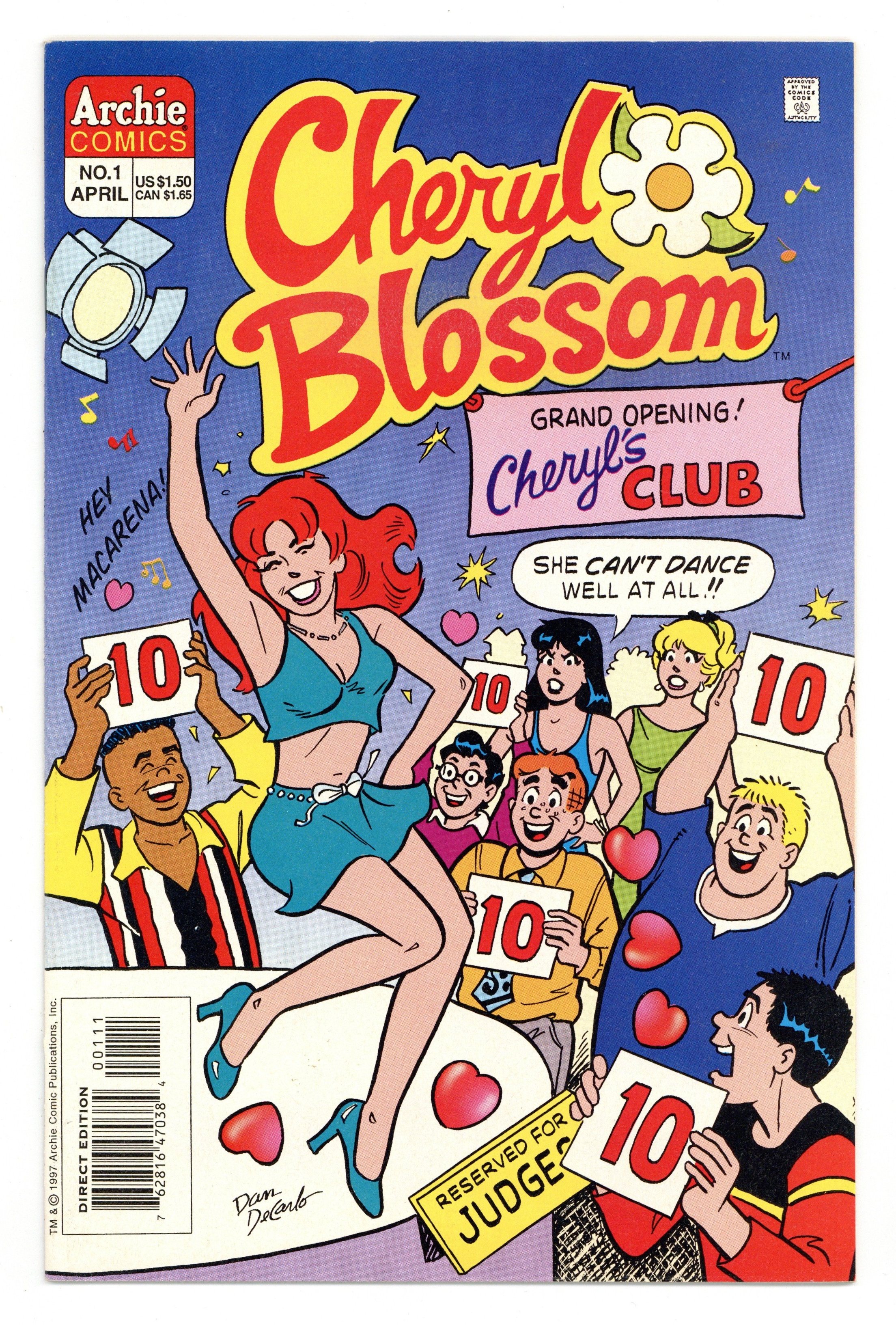 Tags: ArchiePublished Apr 1997 by Archie Publications.$16.75Cover pencils by Dan DeCarlo, inks by Jon D'Agostino. "Join the Club," script by Dan Parent, pencils by Don DeCarlo, inks by Jon D'Agostino; When Cheryl and Jason are bequeathed a run-down country club by a rich aunt, Cheryl hatches a plan to turn it into a nightclub. Dig in and Help Jimmy Dean Support United Cerebral Palsey public service announcement with Jughead. Cheryl Fan Art. Sabrina the Teenage Witch ad. Article in which editor Victor Gorelick discussing the new Cheryl Blossom comic, Jughead #91, and the Sabrina The Teenage Witch TV series. Indoor Winter-Wear Cheryl Blossom illustration by Rex W. Lindsey. 36 pgs., full color. Cover price $1.50.