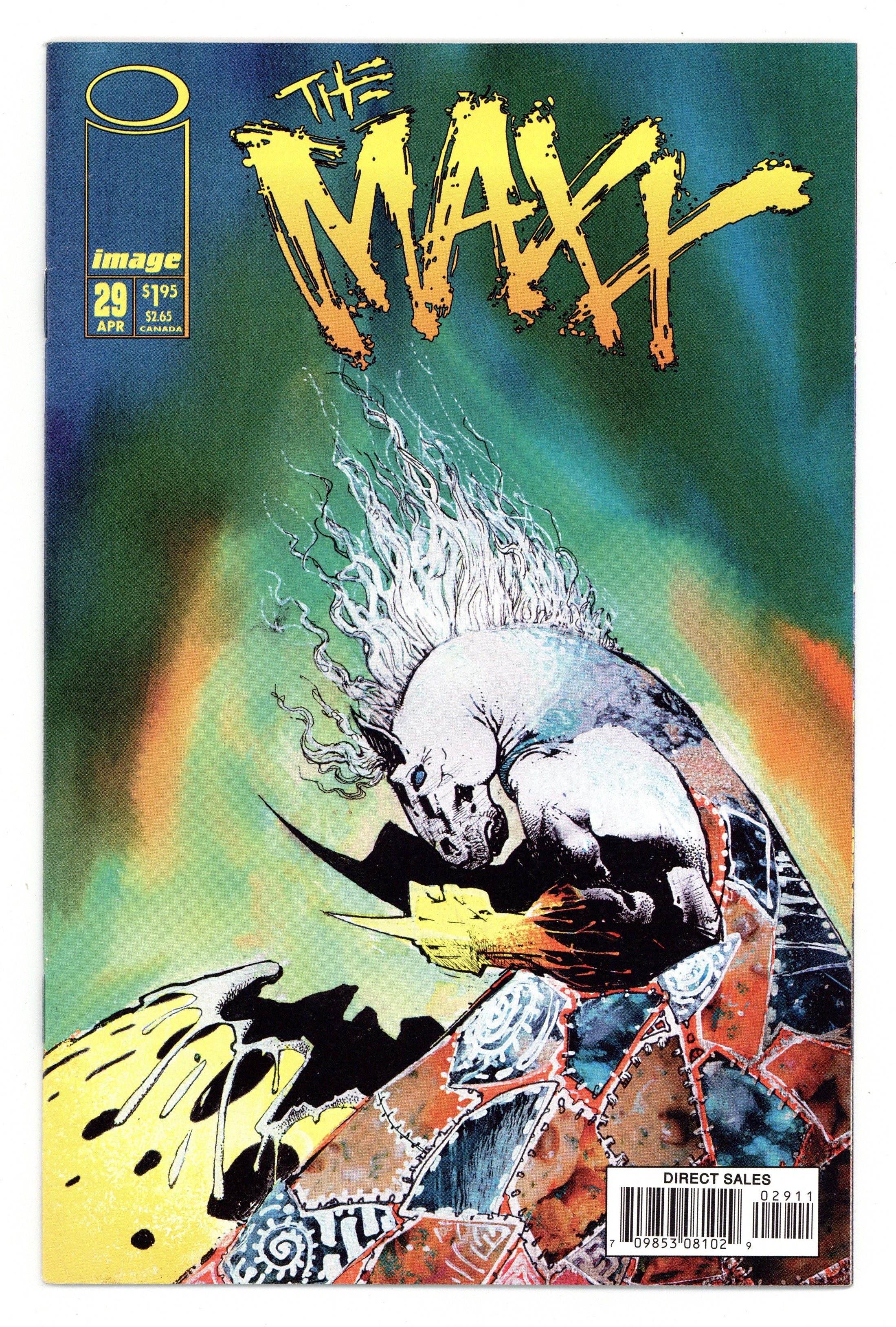 $18.75Written by Sam Kieth. Art by Sam Kieth and Jim Sinclair. Cover by Sam Kieth. Untitled story; Sara's Maxx destroys Iago; Julie is sent back to the real world; Sara gets released; Artie tries to help Sara heal her Outback, but Saras spirit leaves this earth; In the real world, Saras power overloads; Artie gives Dave his old Maxx costume. 36 pgs., full color. $1.95. Cover price $1.95.
