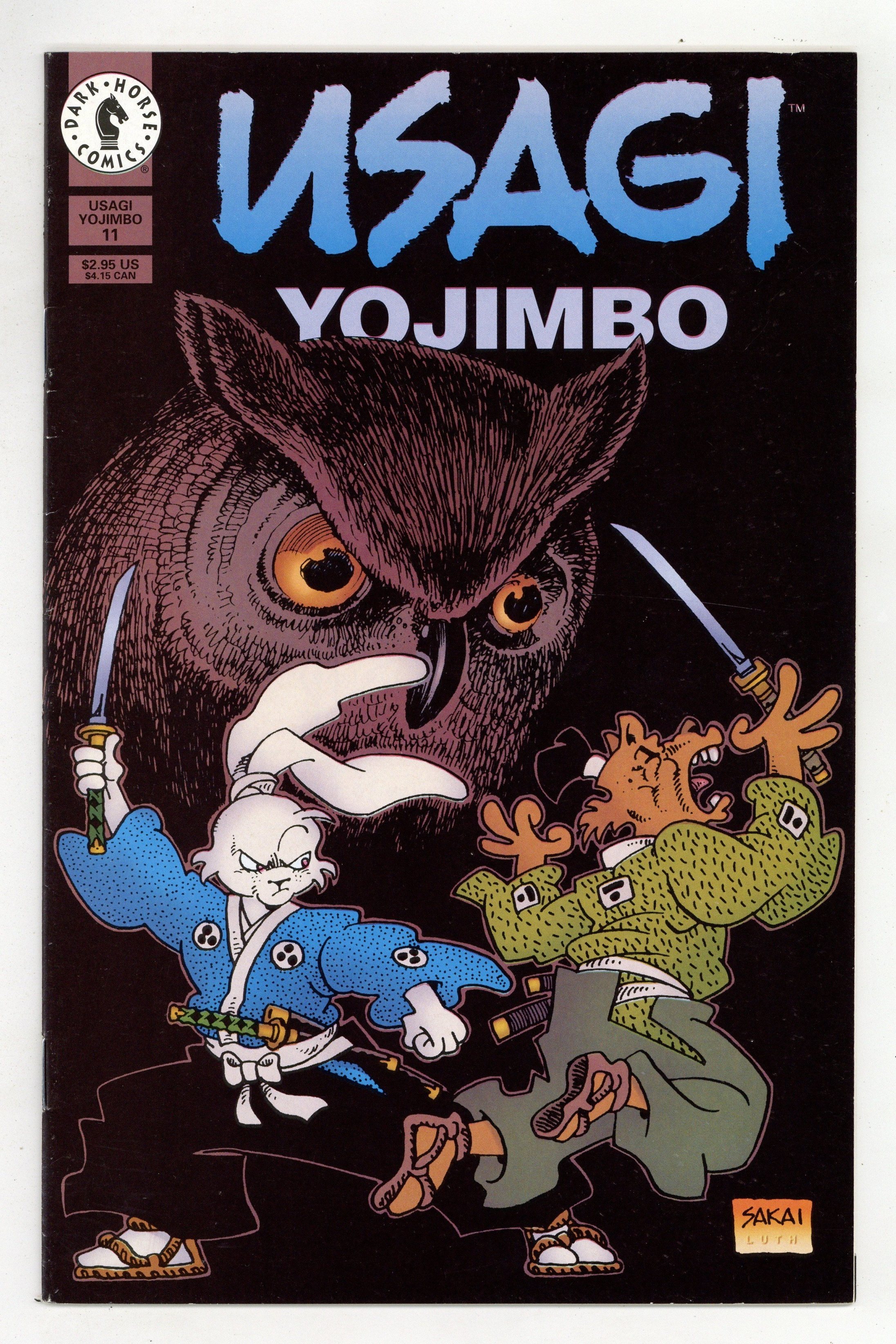 Published Mar 1997 by Dark Horse.$6.00Story and art by Stan Sakai. The owl, in Japanese folklore, is a sign of evil and an omen of death. In "The Lord of Owls," Usagi crosses paths with a mysterious samurai with a lightning sword . . . and who can foresee one's death. In a second story, Kagemaru plots to usurp Chizu as the leader of the Neko Ninja Clan by revealing her traitorous actions to Lord Hebi. Hebi is later attacked in an assassination attempt, but Kagemaru comes to his rescue -- or does he? 32 pages, B&W. Cover price $2.95.