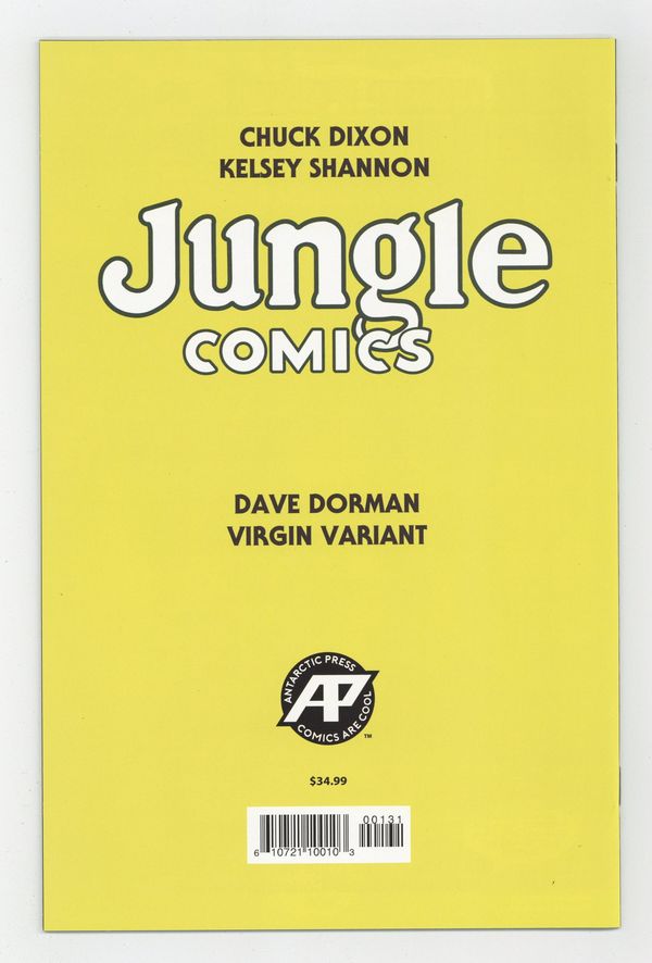 Published May 2019 by Antarctic Press.$23.00Written by Chuck Dixon. Art by Kelsey Shannon. Cover by Dave Dorman. At long last, the return of a classic Golden Age comics genre! JUNGLE COMICS is back, kicking and screaming, brought to you by Chuck Dixon and Kelsey Shannon! It's a comic filled with pulpy adventures set deep in the steamiest jungles, where death lurks just around the corner! A place where men were men and women were HOT! 32 pages, full color. Cover price $34.99.