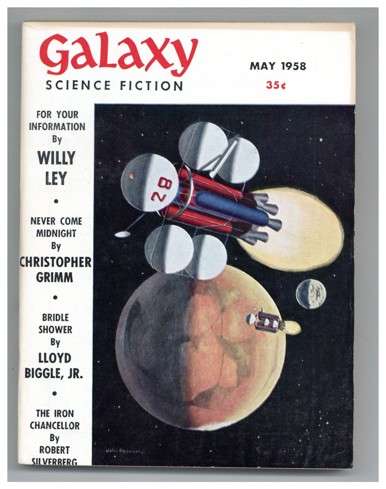 Published May 1958 by Galaxy Publications.$11.25Cover by John Pederson. "The Voice of the Diaphragm" by Richard Wilson, "Of All the Seas with Oysters" by Avram Davidson. Interior art by Leo Dillon, Dick Francis, Wallace Wood. 5 1/2-in. x 7 1/4-in., 144 pages, B&W. Cover price $0.35.