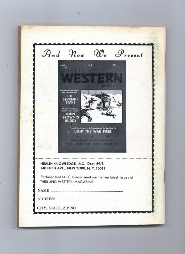 Published Dec 1969 by Health Knowledge.$124.00Vol. 1, No. 1. Winter 1969/1970. Cover by Virgil Finlay. Digest-size horror magazine. 5.25" x 7.5". 130 pages. Black and white. Cover price $0.50.