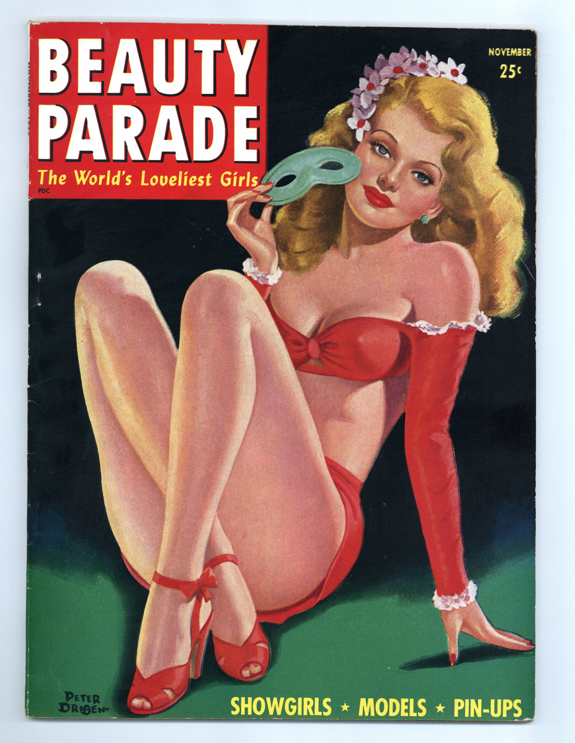 Published Nov 1945 by Beauty Parade Inc..$16.00Volume 4, Issue 6 - November, 1945. Painted cover by Peter Driben. Vintage men's interest magazine focused entirely on amateur lingerie pin-up pictorials. 8.5" x 11.5", 68 pages, B&W. -MATURE READERS- Cover price $0.25.
