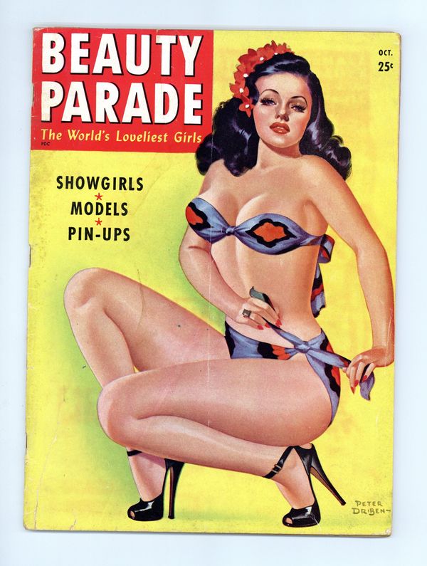 Published Oct 1947 by Beauty Parade Inc..$22.00Volume 6, Issue 4 - October, 1947. Peter Driben cover. Men's interest magazine of pin-ups and glamour shots. 8.5" x 11.5", 68 pages, B&W. Cover price $0.25.