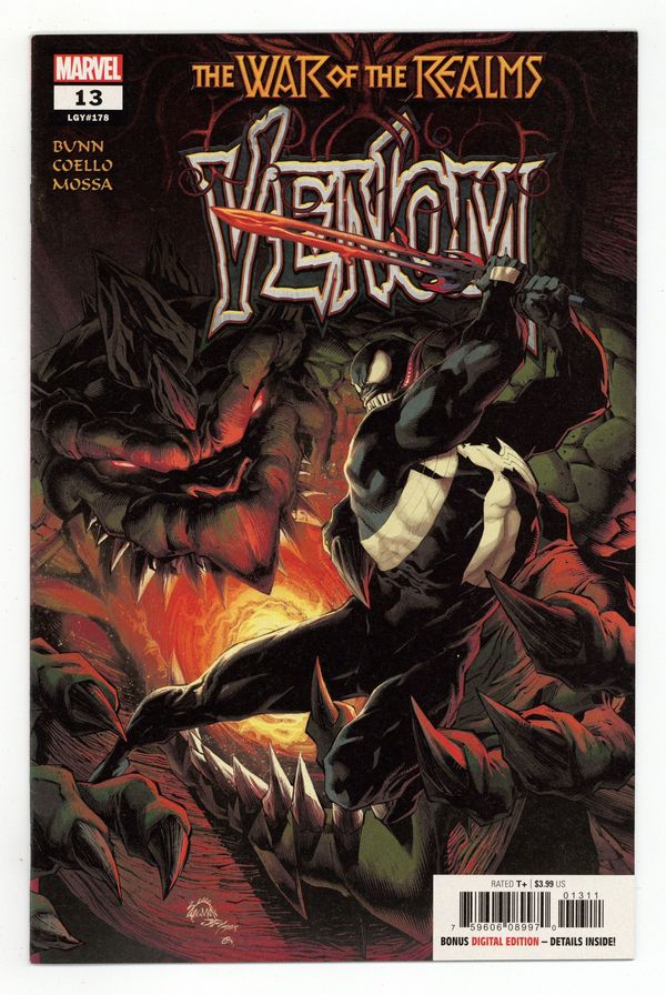 Tags: Marvel Legacy Numbering: Venom (part 178), War of the Realms (Marvel) (part ACT 1: Tie-In)$12.00Written by Cullen Bunn. Art by Iban Coello. Cover by Ryan Stegman. WAR OF THE REALMS TIE-IN! The Marvel Comics event of the year makes landfall in the world of the wicked web-slinger as Venom gets swept up in Malekith's campaign to take over the Ten Realms! But Malekith has designs for the sinister symbiote…and they may prove fatal! 28 pages, full color. Rated T+ Cover price $3.99.