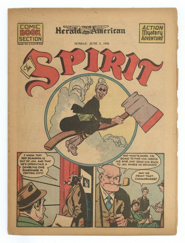 Spirit Weekly Newspaper Comic Insert. 7-1/2 x 10 inches, 16 pages, full color, all newsprint with no slick cover. Wellman/Woolfolk scripts, Fine art with unknown staff assists.