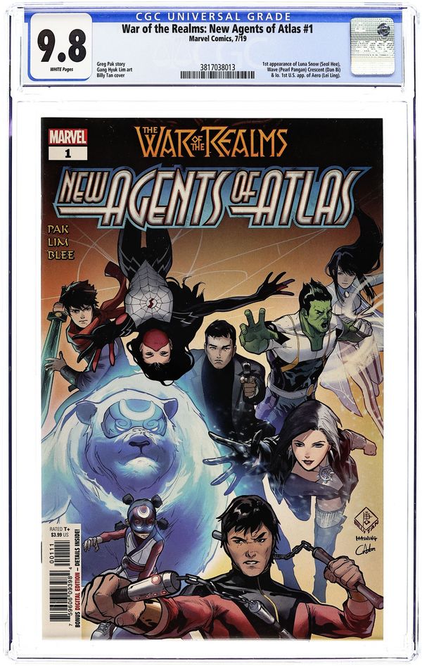 Tags: War of the Realms (Marvel) (part ACT 2: Tie-In)War of the Realms New Agents of Atlas (2019 Marvel) 1A CGC 9.8 Tan