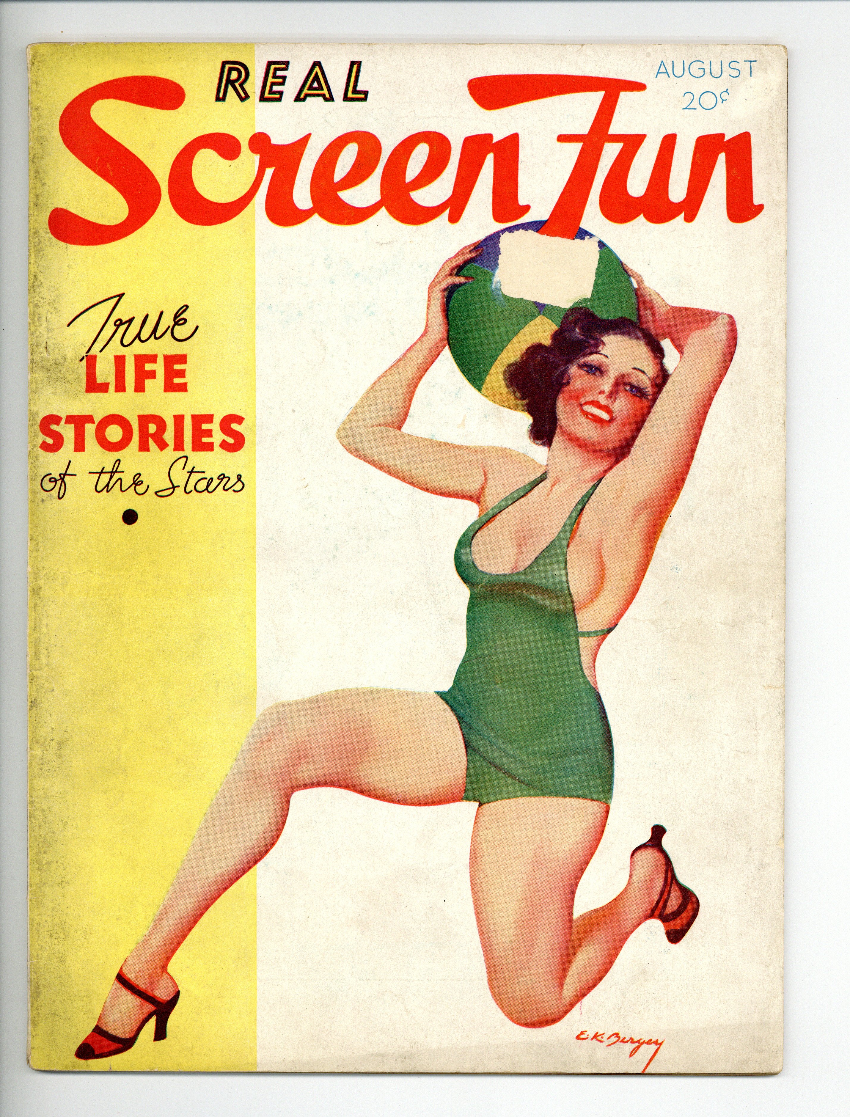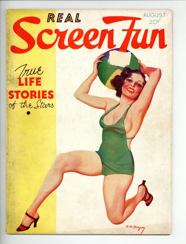 Volume 1, Issue 1 - August, 1934. Earle Bergey cover. Girls, Gags, Cartoons, and Stories. 8.5" x 11.5", 64 pages, B&W. Cover price $0.20.