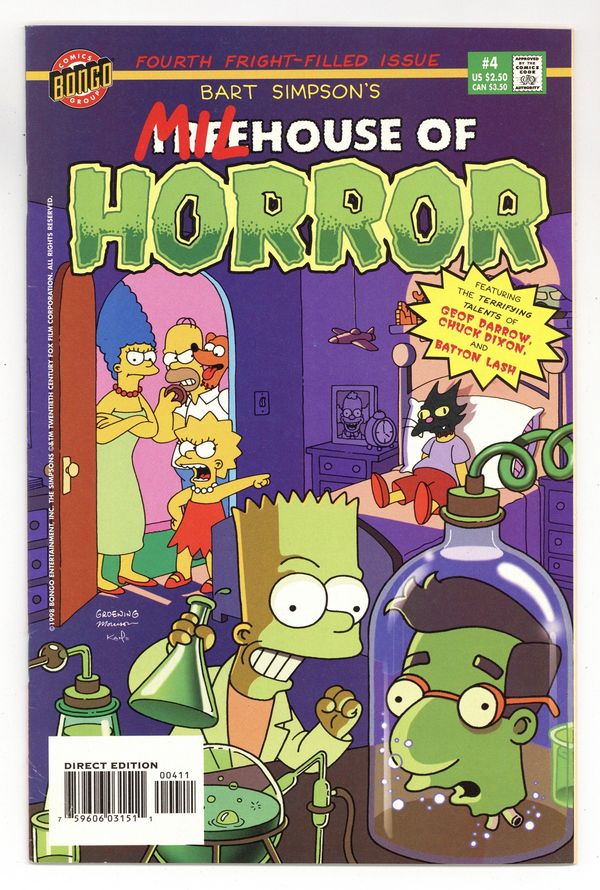 $20.00Written by Chuck Dixon. Art by Phil Ortiz and Tim Bavington. Cover by Bill Morrison. The Christmas tree bought by the Simpsons is actually the vanguard for an alien invasion. Written by Batton Lash. Art by Julius Priete and Tim Bavington. Rigel Four, Springfield Zero illustration by Geof Darrow. Based on The Simpsons TV show. Cover price $2.50.