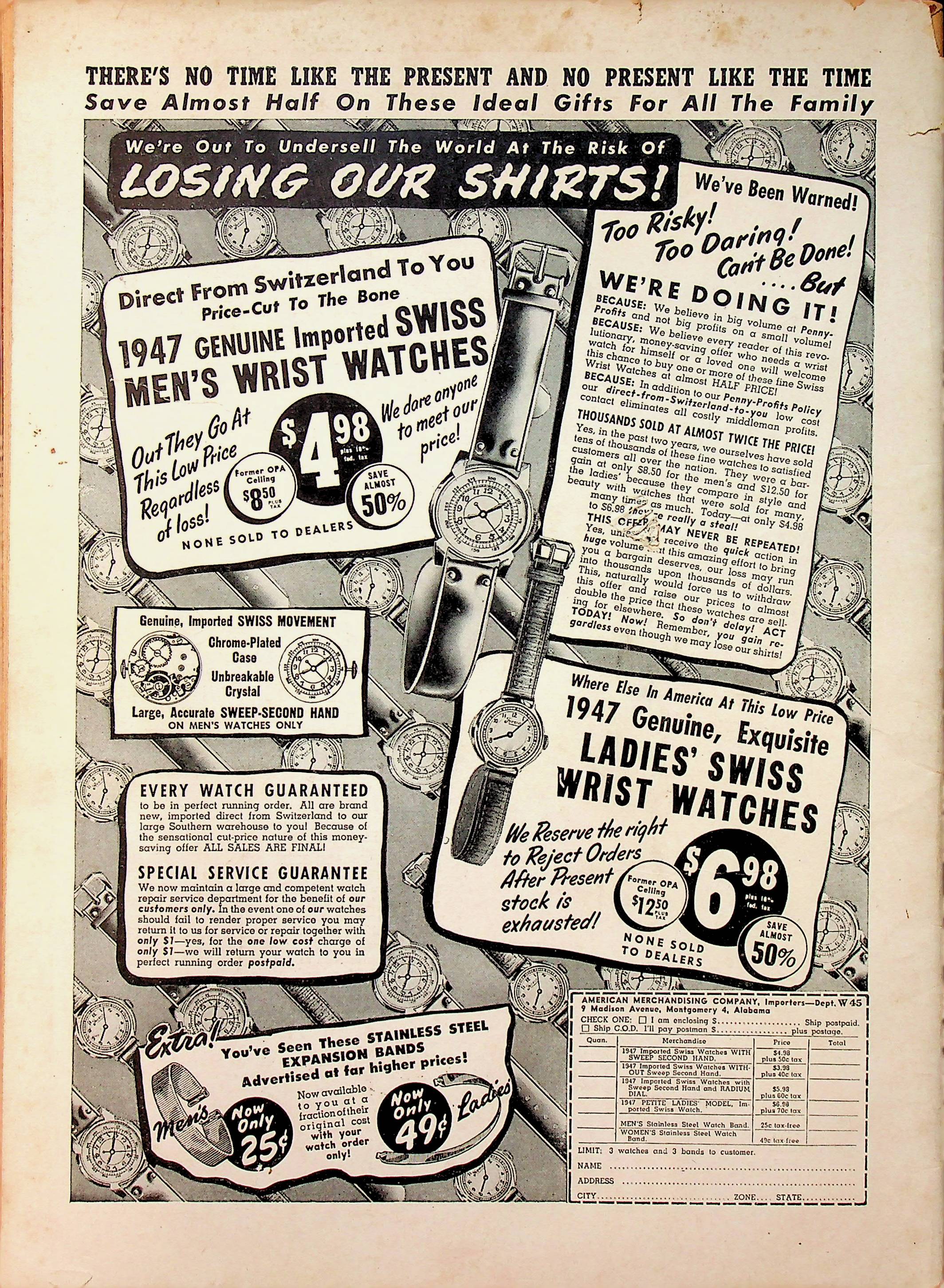 $27.00Volume 3, Issue 4 - February, 1948. Cover by Peter Driben. Men's interest magazine featuring pin-up pictorials with story text. 8.5" x 11.5", 68 pages, B&W. -MATURE READERS- Cover price $0.25.