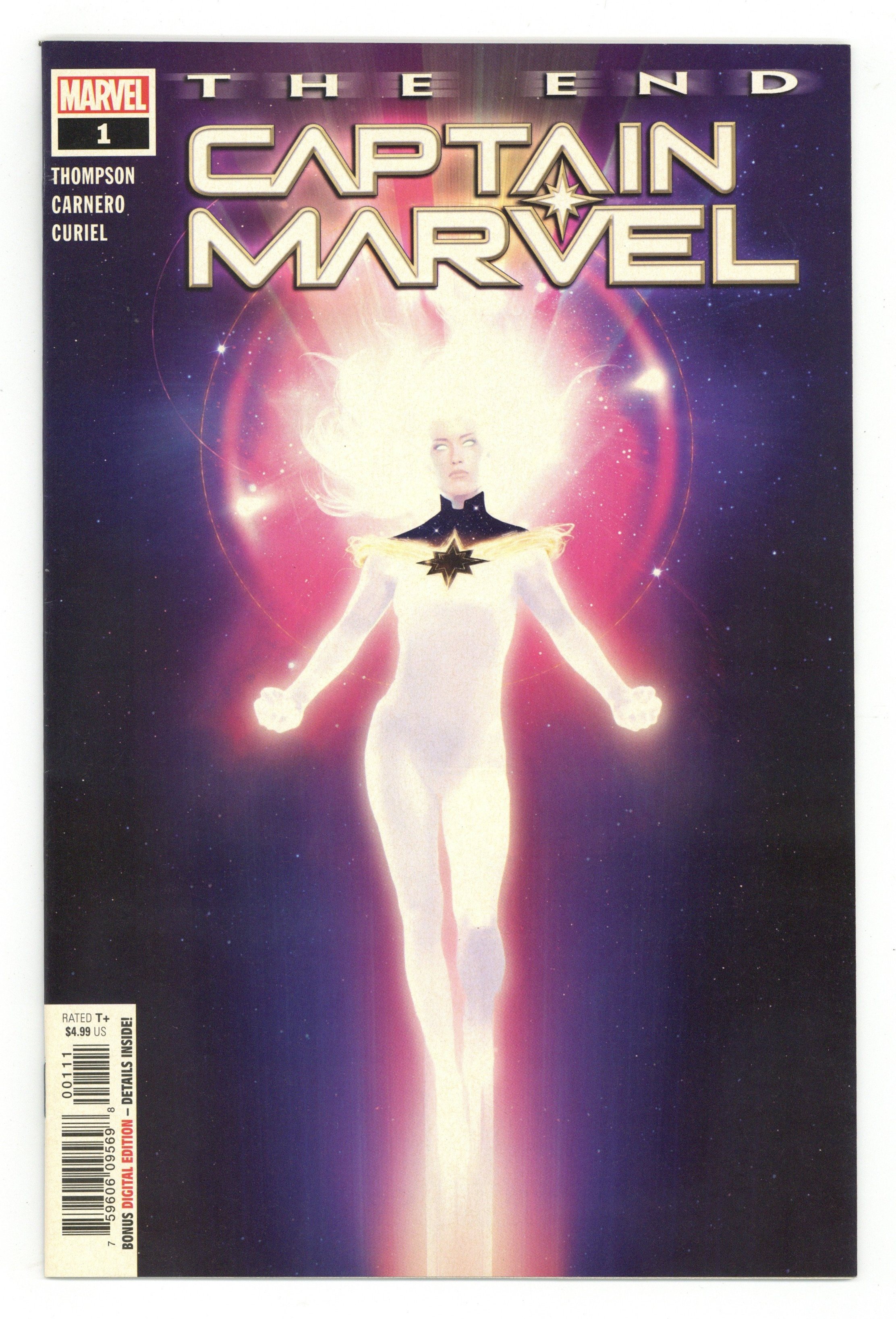 Written by Kelly Thompson. Art by Carmen Nunez Carnero. Cover by Rahzzah. THE FINAL CAPTAIN MARVEL STORY! Fifty years ago, Carol Danvers went into the deepest reaches of the cosmos to spread peace and justice and she hasn't seen a familiar face since! Whatever happened to the planet she once called home? Reuniting CAPTAIN MARVEL superteam KELLY THOMPSON and CARMEN CARNERO! 36 pages, full color. Rated T+ Cover price $4.99.