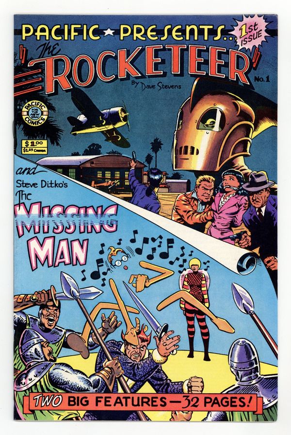 Tags: Rocketeer (part 3)Published Oct 1982 by Pacific Comics.$7.60Cover by Dave Stevens and Steve Ditko. Edited by David Scroggy. Stories and art by Dave Stevens and Steve Ditko. An early anthology series from influential independent publisher Pacific Comics. Noteworthy for presenting the third chapter of Dave Stevens beloved Rocketeer series, after appearances in Starslayer (1982 Pacific/First) #2 & #3. Also, Missing Man, another offbeat hero from Marvel legend Steve Ditko, battles the Queen Bee. Rocketeer Chapter 3; Missing Man Meets Queen Bee. 32 pages, Full Color. Cover price $1.00.