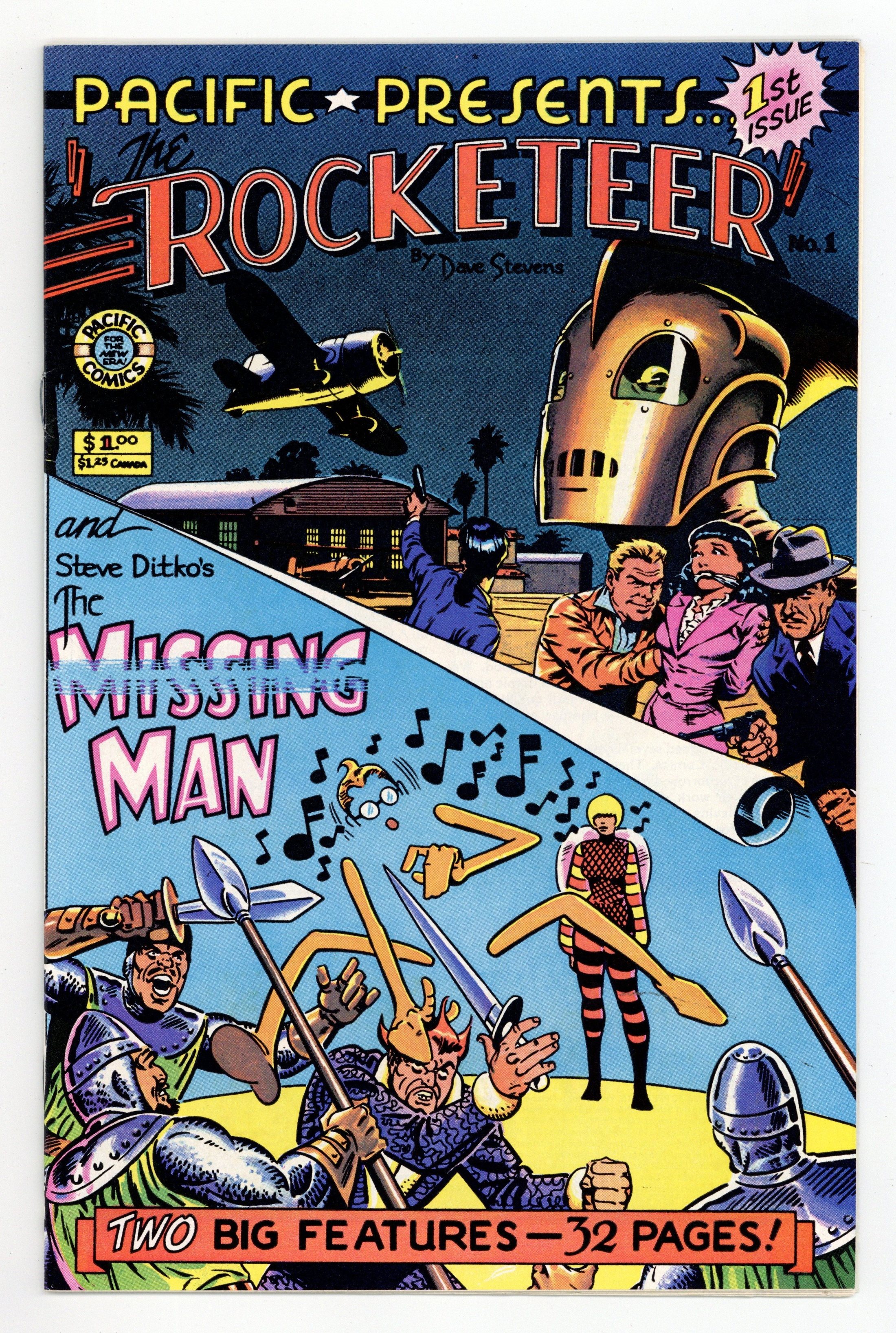 Cover by Dave Stevens and Steve Ditko. Edited by David Scroggy. Stories and art by Dave Stevens and Steve Ditko. An early anthology series from influential independent publisher Pacific Comics. Noteworthy for presenting the third chapter of Dave Stevens beloved Rocketeer series, after appearances in Starslayer (1982 Pacific/First) #2 & #3. Also, Missing Man, another offbeat hero from Marvel legend Steve Ditko, battles the Queen Bee. Rocketeer Chapter 3; Missing Man Meets Queen Bee. 32 pages, Full Color. Cover price $1.00.