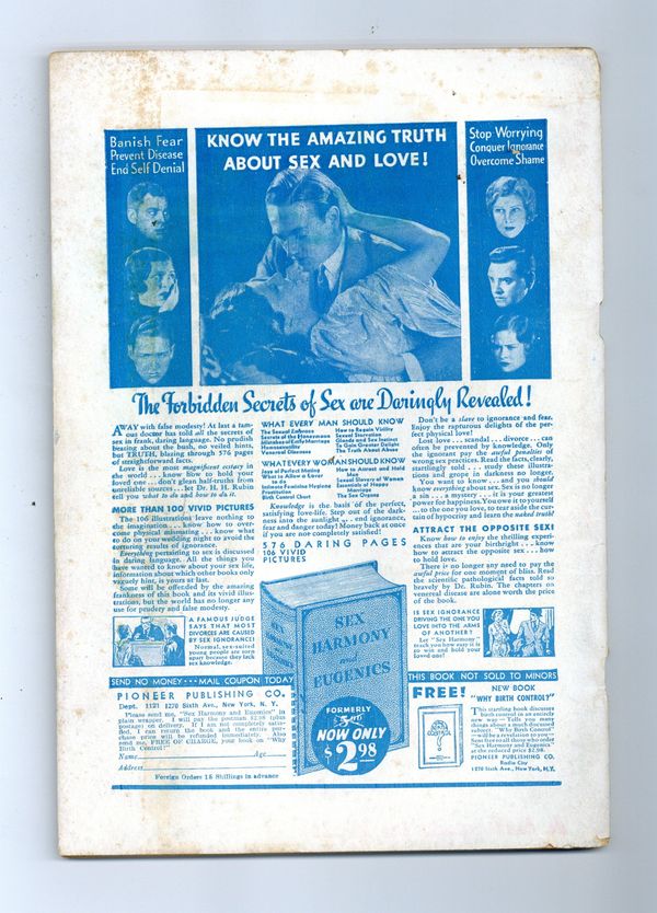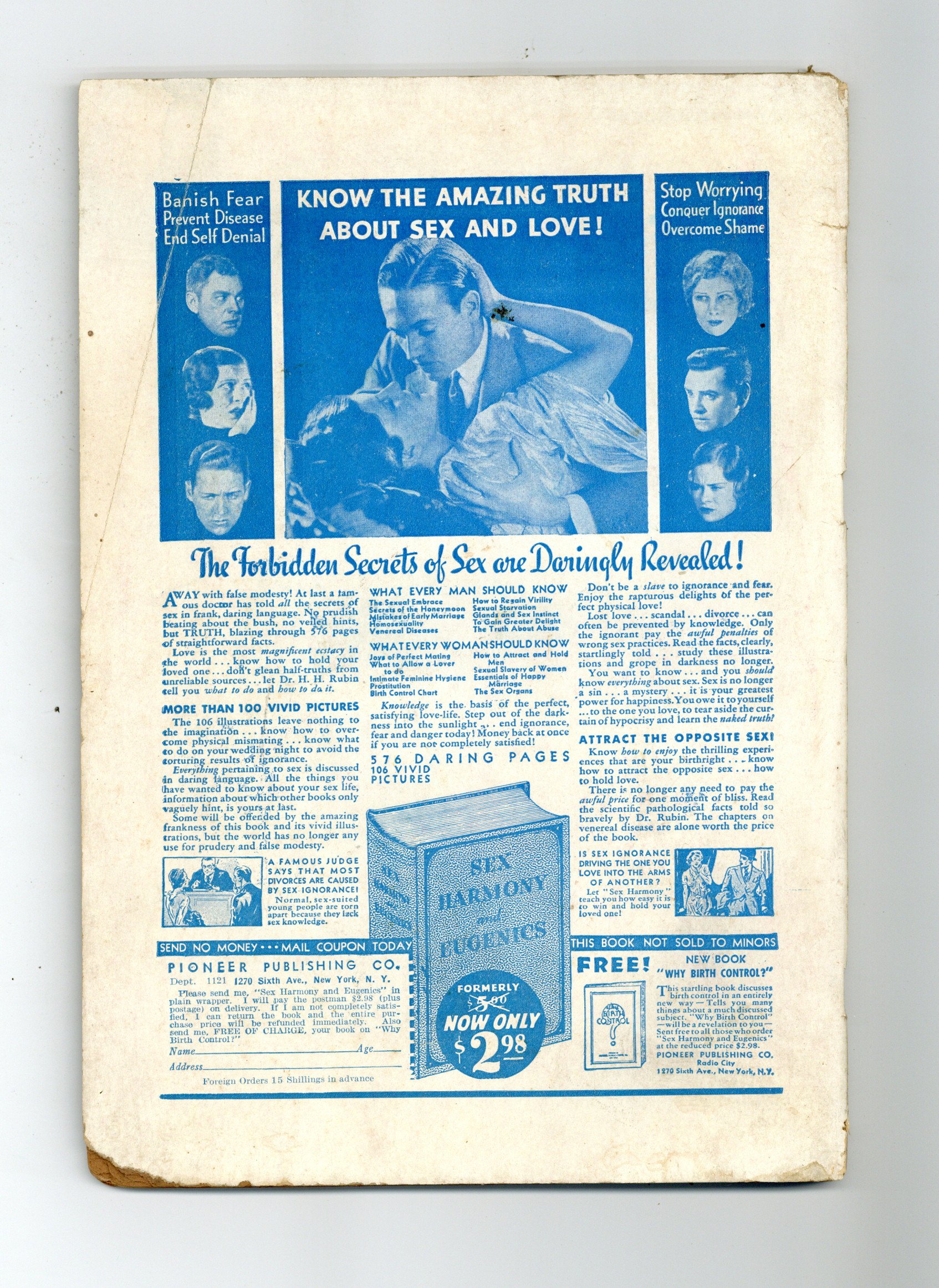 Published Oct 1934 by D.M. Publishing.$125.00- Spine split 15%. Water damage: Extensive. Staple rust: Extensive.