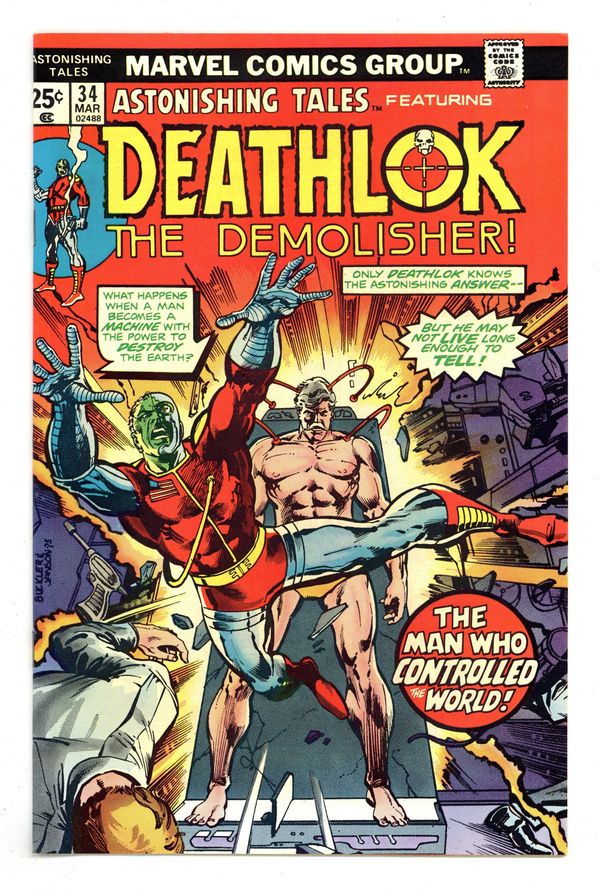 Cover pencils by Rich Buckler, inks by Klaus Janson. And All the King's Madmen...Couldn't Put Deathlok Back Together Again..Or Could They?, script by Rich Buckler (Plot) and Bill Mantlo (Script), pencils by Rich Buckler, inks by Klaus Janson; When Deathlok is unable to escape the explosive attached to his wrist his bionic arm is blown off and the rest of his body is damaged; Mike Travers manages to extract his body and the CIA fixes the damage and reprograms him to stop Simon Ryker (the Savior Machine). Promo for the album "Reflections of a Super-Hero!, art by John Romita. FOOM subscription promo advertising the issue of FOOM celebrating the return of Jack Kirby. Promo for Crazy Magazine. Superman Vs. the Amazing Spider-Man ad. Marvel-Hero Stick-Ons ad. Hostess Cup Cake ad with Spider-Man. 36 pgs. $0.25. Cover price $0.25.
