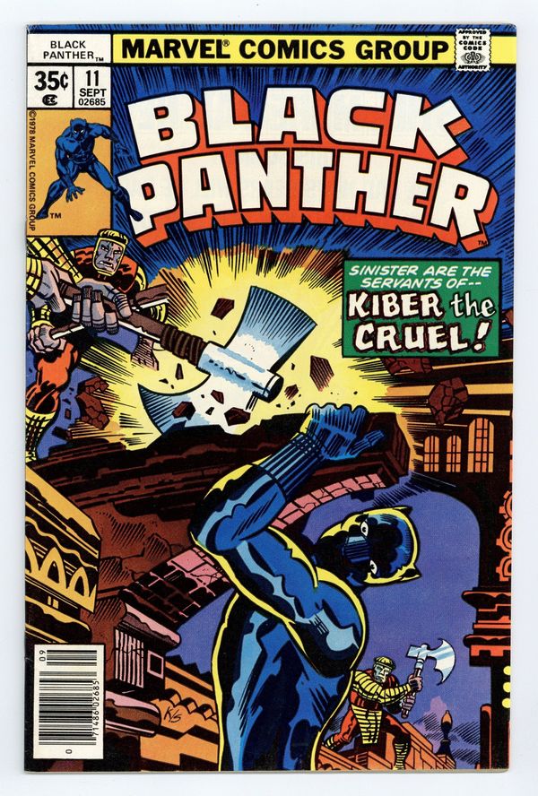 Tags: Marvel Legacy Numbering: Black Panther (part 11), Black Panther$23.00Cover pencils by Jack Kirby, inks by Joe Sinnott. Kiber the Cruel, script and pencils by Jack Kirby, inks by Mike Royer; Following his fight with Jakarra, T'Challa's exposure to the Vibranium has given him some powers of ESP. Khanata is kidnapped by Kiber who is turning humans into energy for life-giving power. 36 pgs. $0.35. Cover price $0.35.
