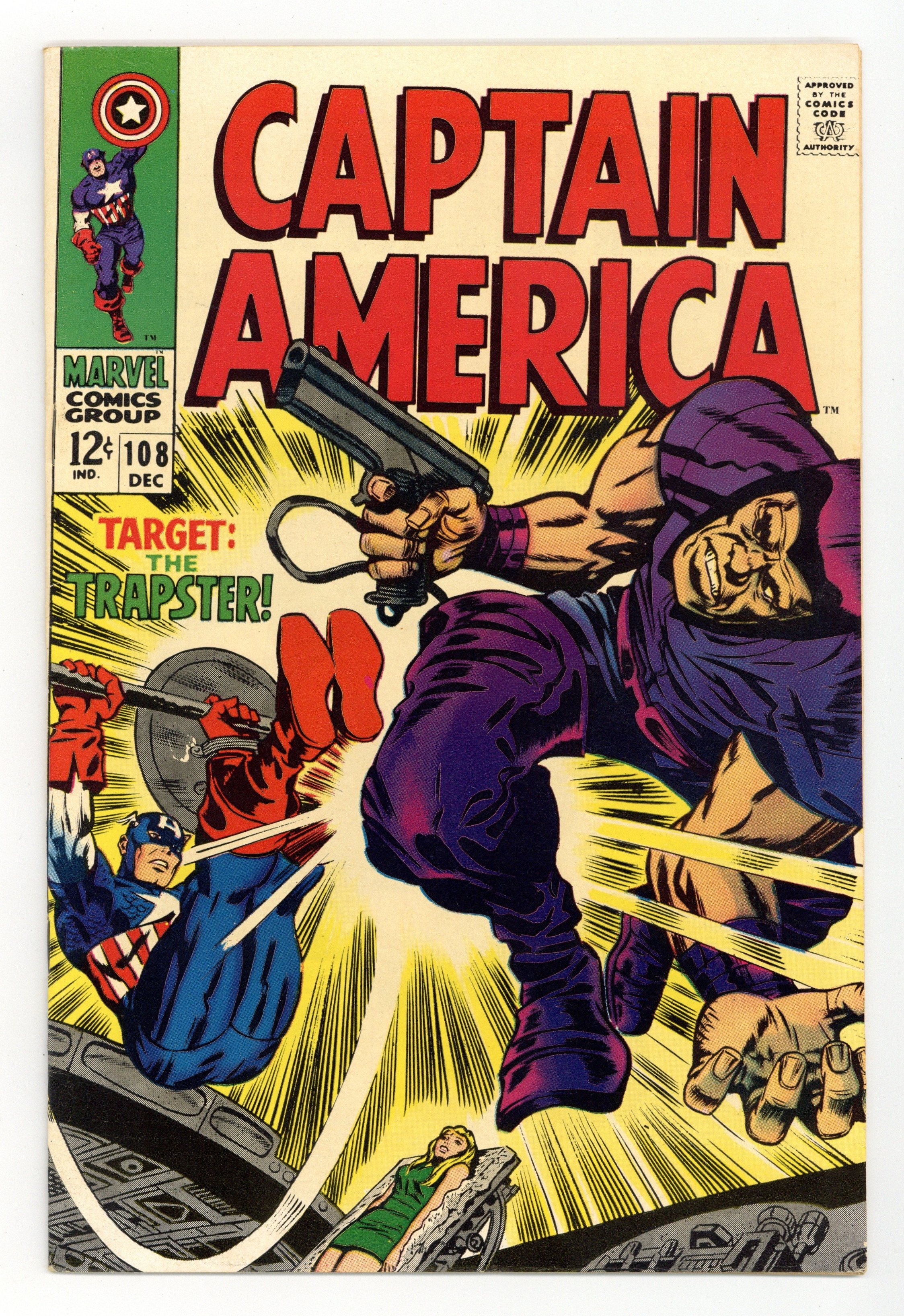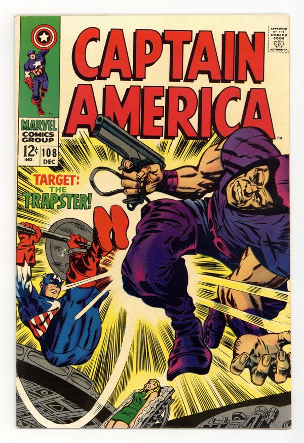 Cover pencils by Jack Kirby, inks by Syd Shores . "The Snares of the Trapster!", script by Stan Lee, pencils by Jack Kirby, inks by Syd Shores; A SHIELD agent asks Captain America to help with a mission; Cap refuses at first, but then the agent tells him it involves rescuing Sharon Carter; Unknown to Captain America, Sharon is the prisoner of the Trapster, who is trying and to get information out of her regarding Project Fireball; Cap fights the Trapster. Ad for Spectacular Spider-Man. 36 pgs., full color. $0.12. Cover price $0.12.
