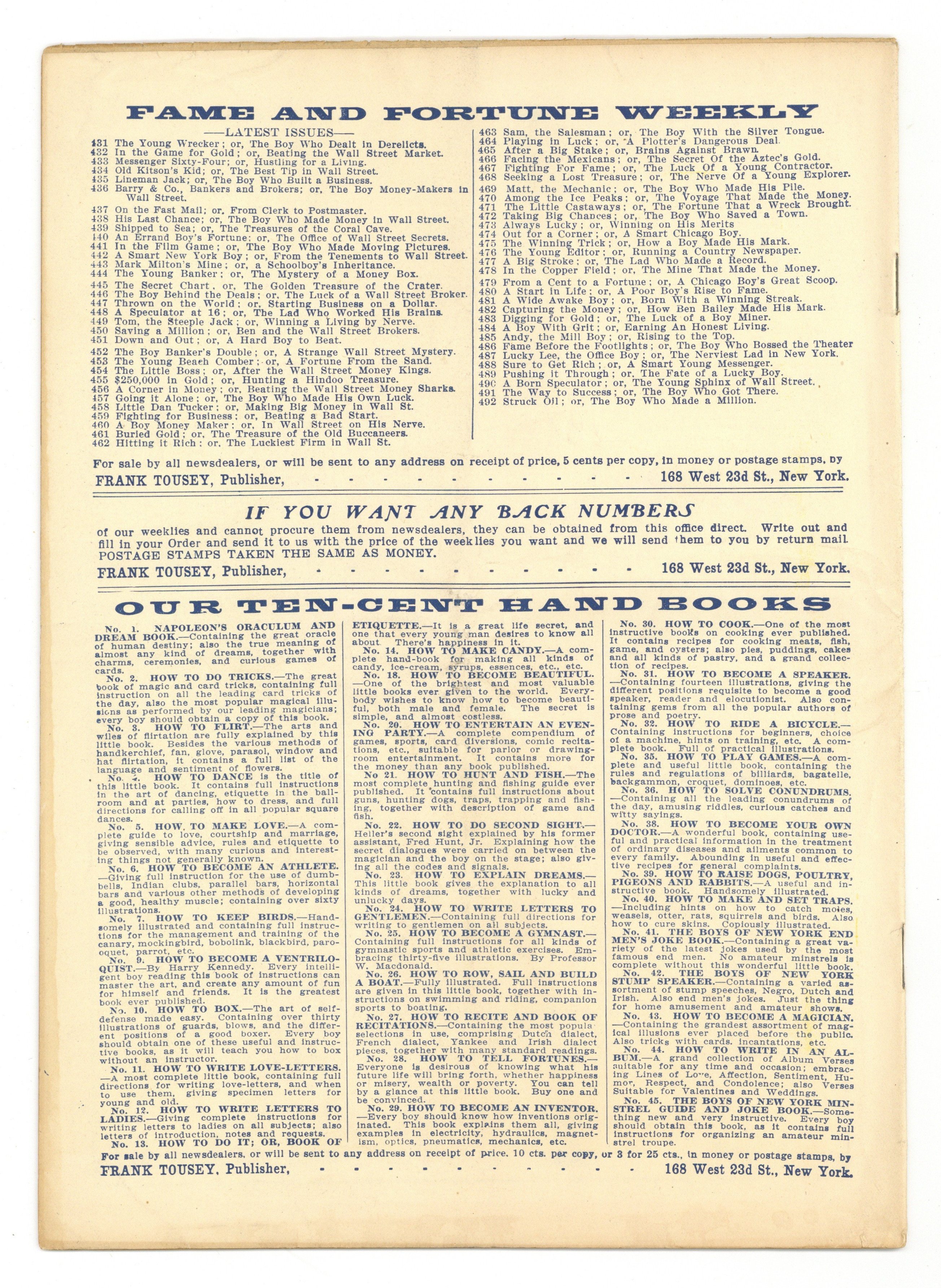 February 26, 1915. The Way to Success; or, The Boy Who Got There. 11" x 8", 32 pages Cover price $0.05.