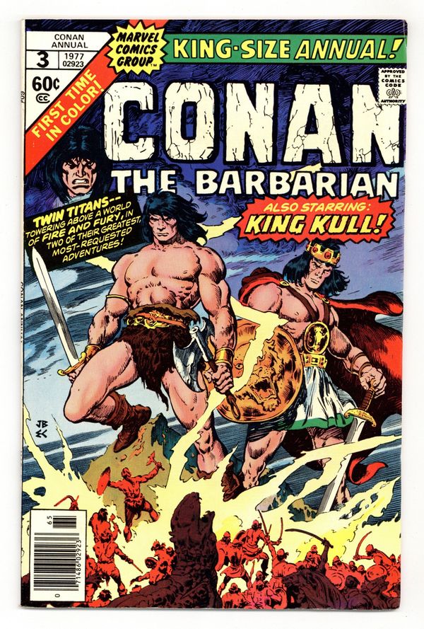 Reprints from Savage Sword of Conan: "At the Mountain of the Moon-God." Script by Roy Thomas, pencils by John Buscema, inks by Pablo Marcos. King Kull back-up: "The Beast From the Abyss." Script by Steve Englehart, pencils by Howard Chaykin, inks by the Crusty Bunkers (Neal Adams and others). Adapted from the story "Black Abyss" by Robert E. Howard and Lin Carter. Splash page inks by Rudy Nebres. New cover: John Buscema pencils, Ernie Chan inks. 52 pgs. Cover price $0.60.