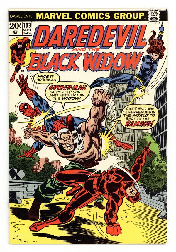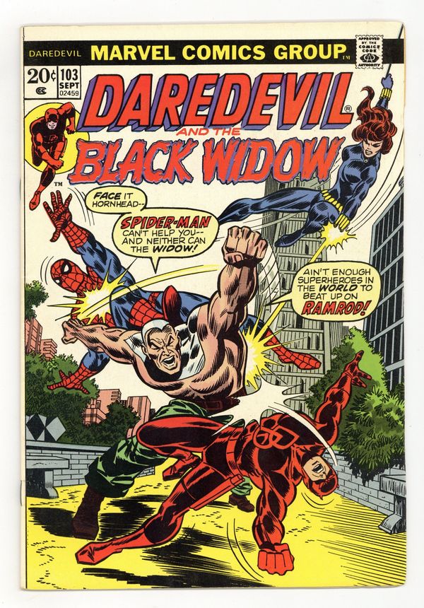 Cover pencils by Don Heck, inks by John Romita Sr. ...Then Came Ramrod!, script by Steve Gerber, pencils by Don Heck, inks by Sal Trapani; Peter Parker arrives on the west coast to interview DD and the Widow for the Daily Bugle; Ramrod attacks and steals a pack of papers that have been given to DD for safe keeping; Spidey, DD and the Widow retrieve the papers and take Ramrod down. 36 pages. Cover price $0.20. Cover price $0.20.