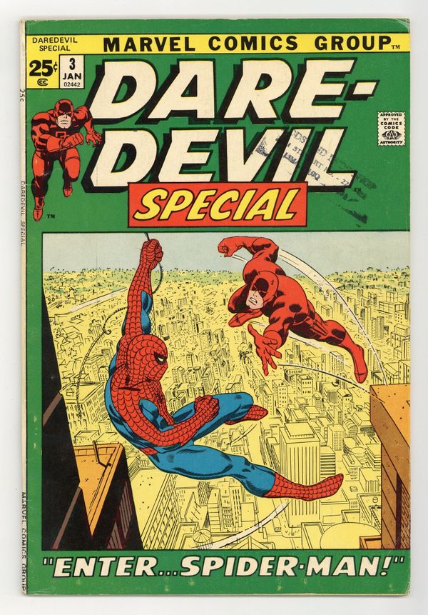 Tags: Daredevil$21.00Daredevil/Spider-Man reprints: "Enter Spider-Man" (from Daredevil 16) and "None Are So Blind" (from Daredevil 17). John Romita Sr. art. Cover price $0.25.