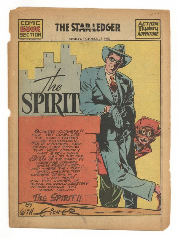 Spirit Weekly Newspaper Comic Insert. 7-1/2 x 10 inches, 16 pages, full color, all newsprint with no slick cover. Eisner/Fine/Quality staff assist on Spirit. Fine/Belfi art on Spirit; Scripts by Manly Wade Wellman.