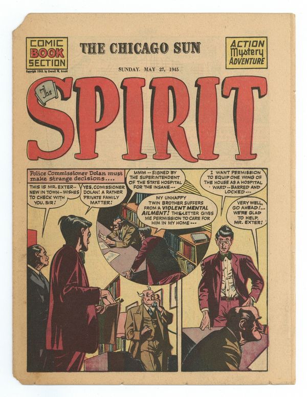 Published May 1945 by Promotional.$25.00Spirit Weekly Newspaper Comic Insert. 7-1/2 x 10 inches, 16 pages, full color, all newsprint with no slick cover. Wellman/Woolfolk scripts, Fine art with unknown staff assists.