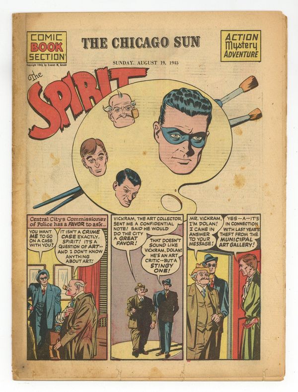 Spirit Weekly Newspaper Comic Insert. 7-1/2 x 10 inches, 16 pages, full color, all newsprint with no slick cover. Wellman/Woolfolk scripts, Fine art with unknown staff assists.