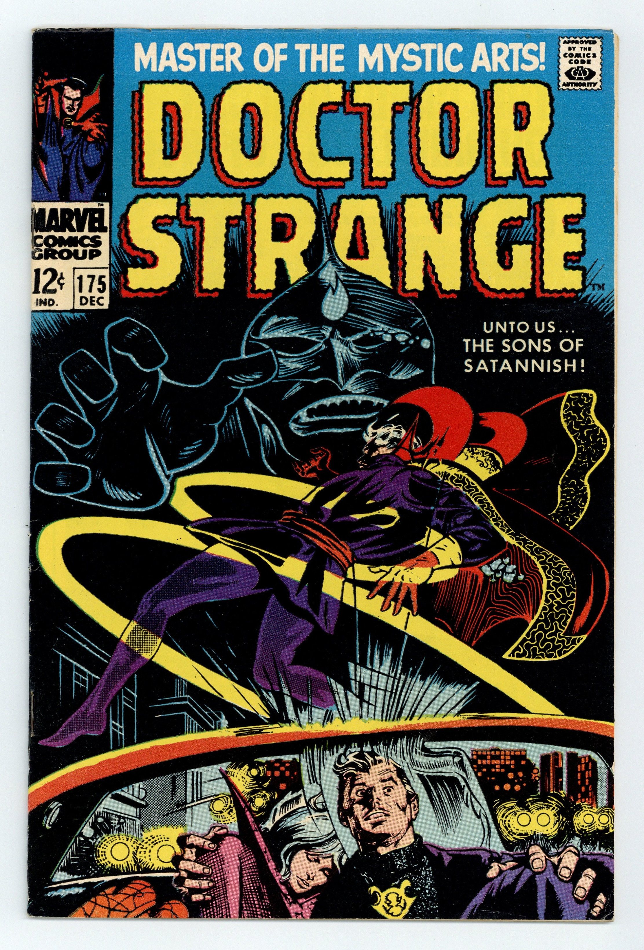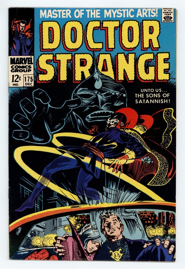 Tags: Marvel Legacy Numbering: Doctor Strange (part 175)$25.00Cover pencils by Gene Colan and Marie Severin, inks by Tom Palmer and Marie Severin. Unto Us... The Sons of Satannish, script by Roy Thomas, pencils by Gene Colan, inks by Tom Palmer; Clea is taken by Admodeus, of the Sons of the Satannish. 36 pgs. $0.12. Cover price $0.12.