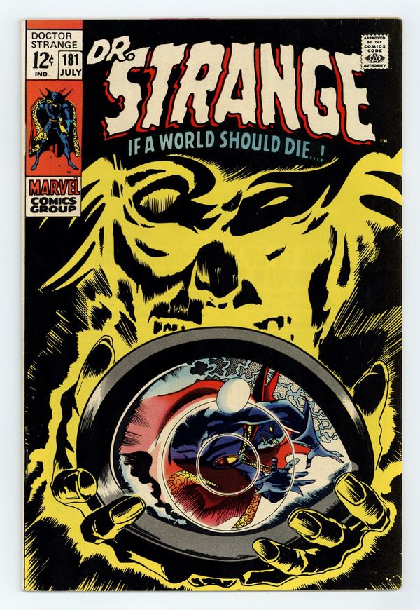 Tags: Marvel Legacy Numbering: Doctor Strange (part 181)$17.75Last 12-cent issue. Cover pencils by Gene Colan, inks by Tom Palmer. If a World Should Die Before I Wake, script by Roy Thomas, pencils by Gene Colan, inks by Tom Palmer; Strange enters the Dream Dimension to battle Nightmare and free Eternity; Nightmare turns the Eye of Agamotto against Strange; Clea appearance. Letter to the editor from comics artist Scott Shaw. Cover price $0.12.