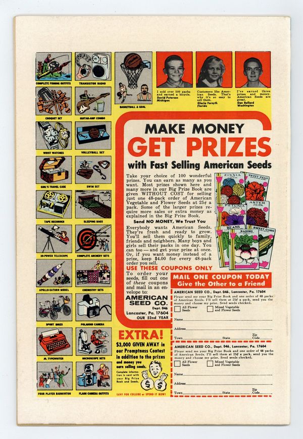 Tags: Fantastic Four$50.00"The Torch Goes Wild!" Guest-starring the Inhumans. Script by Stan Lee. Pencils by Jack Kirby. Inks by Joe Sinnott. Cover by Jack Kirby and John Verpoorten. The fighting mad Human Torch invades the Hidden Land! And Johnny Storm has just one goal in mind! Reunite with his beloved Crystal and bring her back home to New York City! However Black Bolt and the royal family disagree. So the Human Torch must fight to get what he wants! After Johnny battles past Triton, Karnak, and Medusa; only one inhuman stands in his way! Crystal herself! But wait a minute, the plan was to save Crystal, not fight her! The torch's road to Attilan was paved with good intentions, but now it's turning into a disaster! Can Reed, Sue, and Ben get their youngest teammate under control before he destroys the Inhumans' homeland? Cameo appearance by Gorgon. (Notes: Johnny Storm returns to the Great Refuge (again looking for Crystal) in Fantastic Four 130. This issue includes a half-page survey for readers to complete and mail back to the Marvel bullpen. This story was reprinted in Marvel's Greatest Comics 80.) 36 pages Cover price $0.15.