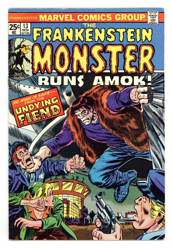 $13.50Cover pencils by Ron Wilson, inks by Mike Esposito and Frank Giacoia. All Pieces of Fear!, script by Doug Moench, pencils by Val Mayerik, inks by Jack Abel; After being attacked by a street gang, the Frankenstein Monster is befriended by Ralph Caccone. Six Strange Words, art by Syd Shores; A thug threatens a sorcerer to tell him six words which allow him to send a man into limbo; After he uses them on the sorcerer he breaks the fourth wall and addresses the reader directly telling them they "know too much"; He speaks the incantation once again, but this time he is the one to disappear into limbo where he finds the sorcerer laughing at him. 36 pgs., full color. $0.25. Cover price $0.25.