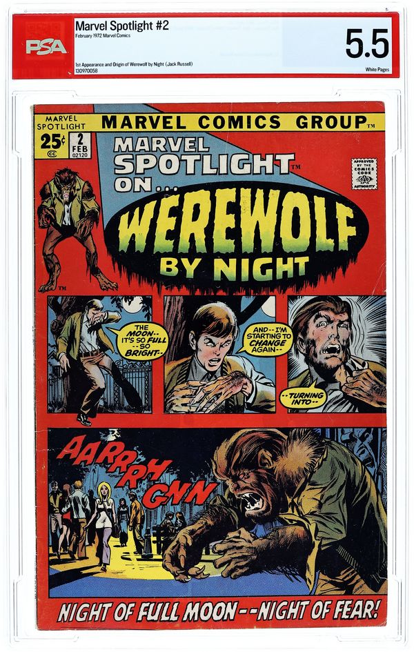 Ends Jan 14 7:37 PM CST Bid History 4 bids Current Bid $305 Your Secret Max Bid If you'd like to bid, please log in or register. 52-page giant. Origin and first appearance of Werewolf By Night. Cover pencils by Neal Adams, inks by Tom Palmer. First Night, script by Roy Thomas (plot); Jean Thomas (plot), and Gerry Conway (script), art by Mike Ploog; Jack learns of the family curse on his eighteenth birthday from his mother on her deathbead; Jack begins to believe that his step-father had his mother killed. House ad for Venus, art by Bill Everett. Where Gargoyles Dwell! starring Venus, script and art by Bill Everett. 52 pages, full color. Cover price $0.25.