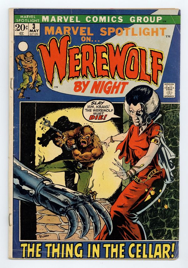 First 20-cent cover price. Cover art by Mike Ploog. Werewolf By Night!, script by Gerry Conway, art by Mike Ploog; Andrea Timly captures Jack Russell and tries to get the location of the Darkhold from him. 36 pages, full color. Cover price $0.20.