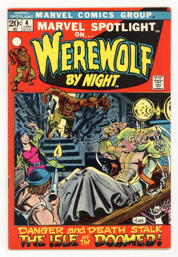 Cover art by Mike Ploog. Island of the Damned!, script by Gerry Conway, art by Mike Ploog; Jack Russell travels to an island while searching for the Darkhold; While there he is turned into stone. Continued in Werewolf By Night #1. 36 pages, full color. Cover price $0.20.