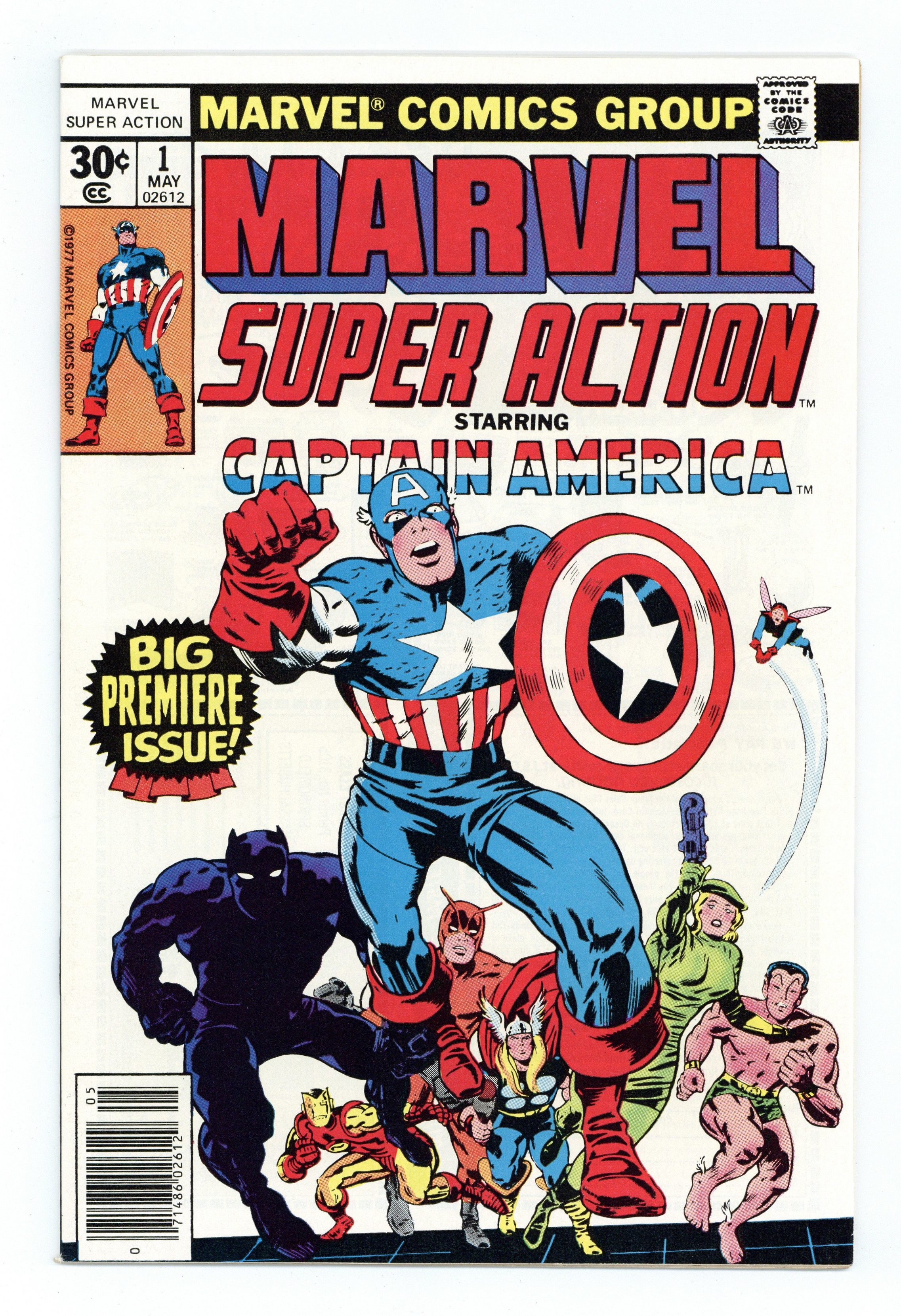 Tags: Avengers$7.00Originally Presented in Captain America (1968 1st Series) #100 - "This Monster Unmasked!" Starring Captain America. Guest-starring Black Panther. Cameos by the Avengers and Sub-Mariner. Written by Stan Lee. Art by Jack Kirby and Syd Shores. After a quick recap of how the Sentinel of Liberty arrived in modern times, Cap, T'Challa and Sharon Carter suddenly find themselves surrounded. Outnumbered and out gunned, our heroes soon learn that they face the sinister World War II criminal Baron Zemo! But that's impossible, Zemo is dead, isn't he? Cover price $0.30.