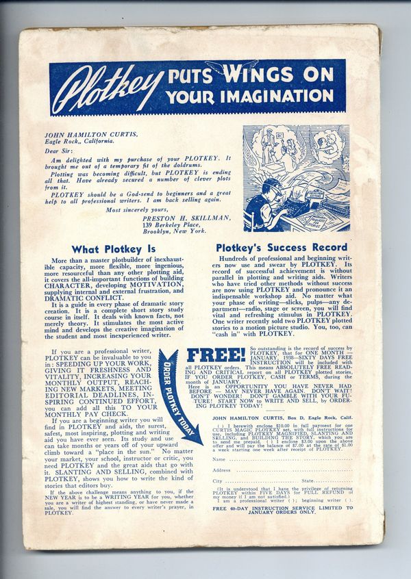 Published Jan 1938 by F+W Publications.$7.00- Back cover detached 10%. Staple rust: Slight.