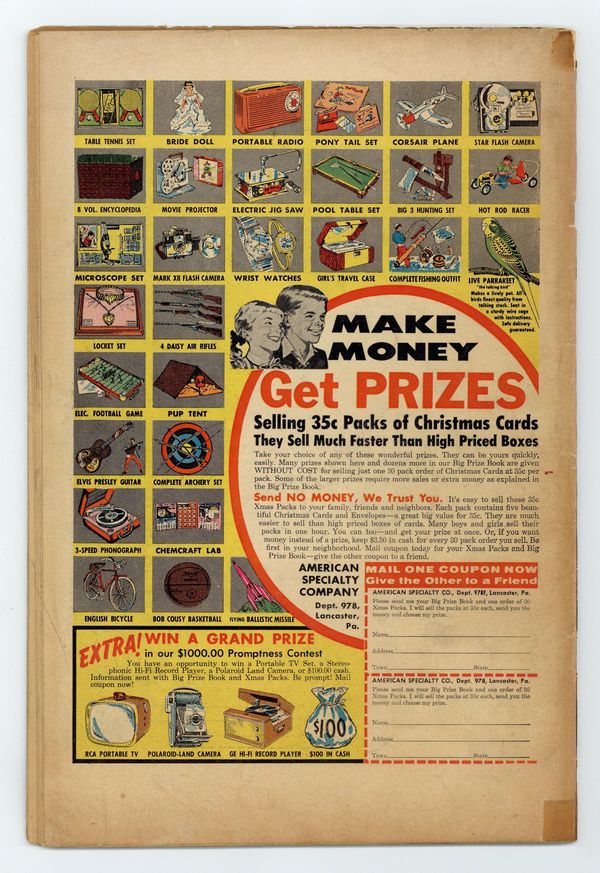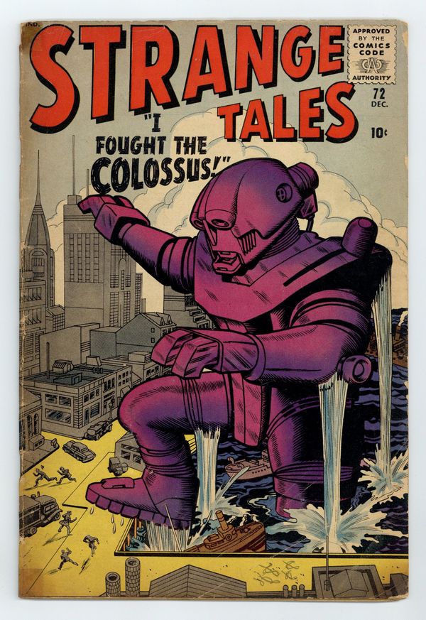 Cover pencils by Jack Kirby, inks by Christopher Rule. "I Fought the Colossus!", pencils by Jack Kirby, inks by Steve Ditko; An advanced supercomputer turns Earth into a utopia, but suspicion remains, only to be inflamed when it is found to be building a giant robot. "Weather Man" text story, art by Joe Maneely. "I Was Trapped on the Ghost Ship!", art by Don Heck; A cruel sea captain greedily pursues the flying Dutchman; He catches the ship, but is trapped there as a ghost, replacing the former ghost, who now can go free. "I Am the Abominable Snowman!", art by Paul Reinman; A thief steals a ruby from a Himalayan retreat, but a curse on the stone makes him intensely cold and forces him to wear heavy furs that keep him from returning to civilization. "I Saw the Elephants' Graveyard!", art by John Forte; An ivory hunter searches for the legendary spot where elephants go to die, but he finds that the spot is an inaccessible pit of quicksand. "I Entered the...Doorway to Doom!", art by Steve Ditko; A Russian farmer becomes a gold miner and uncovers a doorway into a dimension of malevolent beings. 36 pgs., full color. Cover price $0.10.