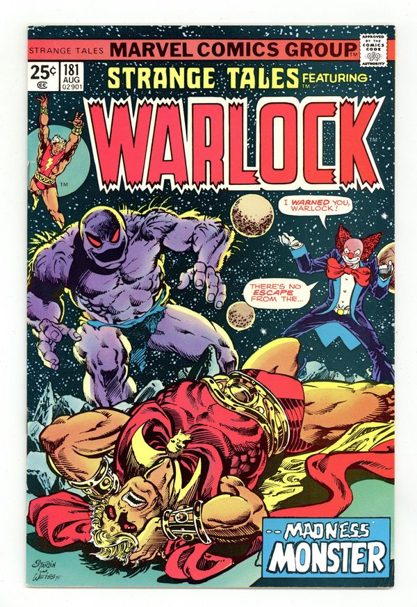 Cover pencils by Jim Starlin, inks by Alan Weiss. "1000 Clowns!", script and pencils by Jim Starlin, inks by Al Milgrom; Warlock finds himself in a strange place and considers, that this is just an illusion but decides, that he is in a Reality unlike any he has ever seen before, the Head Clown states, that Warlock has always been in this Reality, he has just never seen it in quite this manner before and calls it the "Land of the Way it was"; A Technician states that something is wrong with visual and audio programming; The Clowns are trying to reprogram Warlock and Beautiful Jan paints a Clown's Mask on Warlock's Face because all the dark aspects have to go; Gamora and Pip the Troll are on their way to rescue Warlock and interrogate one of the Black Knights, and he is scared to death by Gamora; Len takes Warlock to a Renegade Clown who is being punished. Hulk comic book ad. The story continues in Warlock 9. Captain Marvel stars in a one-page Hostess ad, "The Big Bang!" 36 pgs., full color. Cover price $0.25.