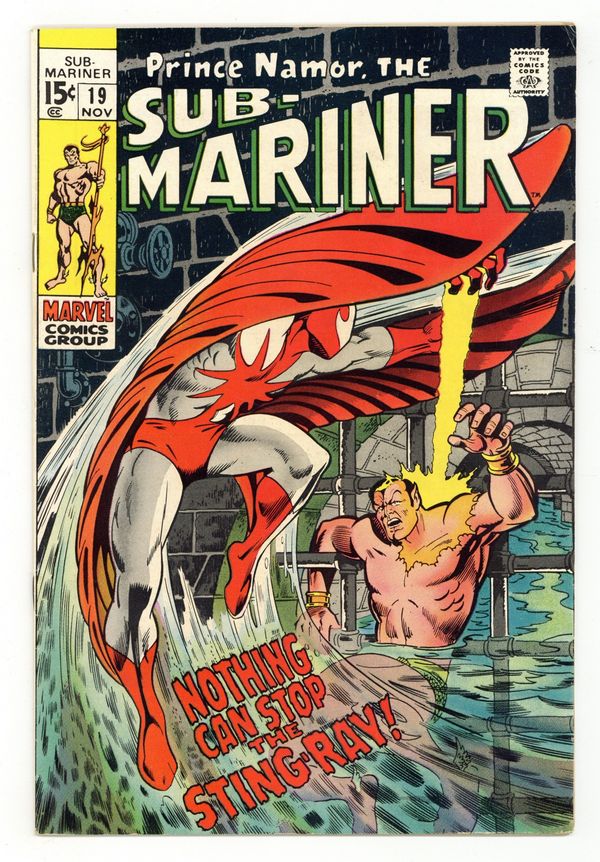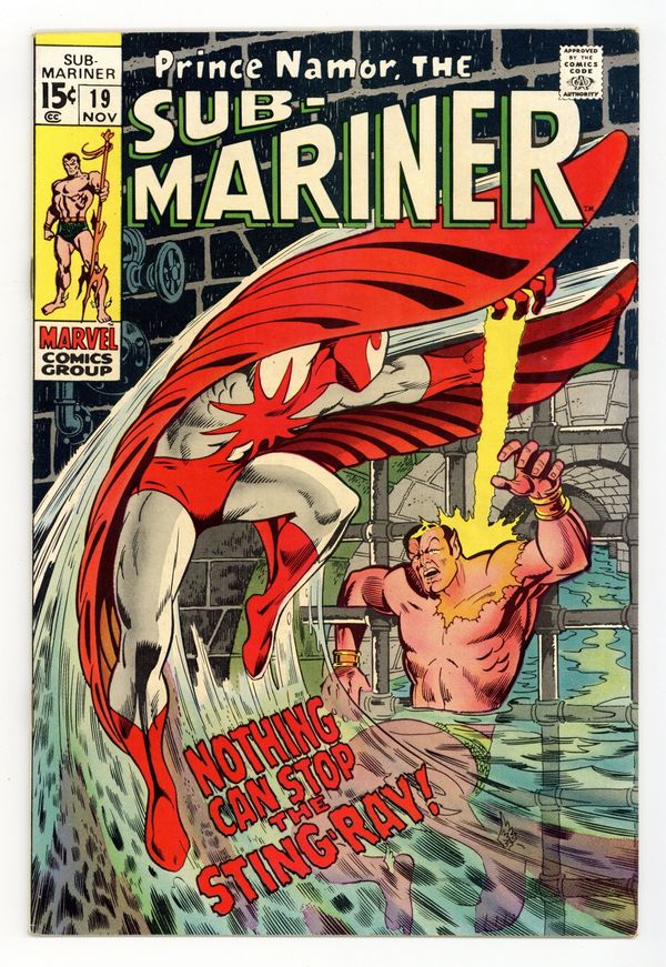 Cover pencils by Marie Severin, inks by Johnny Craig. 1st appearance of Sting Ray in "Support Your Local Sting-Ray," script by Roy Thomas, pencils by Marie Severin, inks by Johnny Craig; Namor learns that he has lost his ability to fly and to breathe underwater; Taken by surprise, he's captured by the costumed adventurer Sting-Ray and turned over to the authorities; Namor escapes, but is pursued by Sting-Ray until he's able to convince Sting-Ray that he isn't as evil as the government claims. 36 pgs., full color. $0.15. Cover price $0.15.